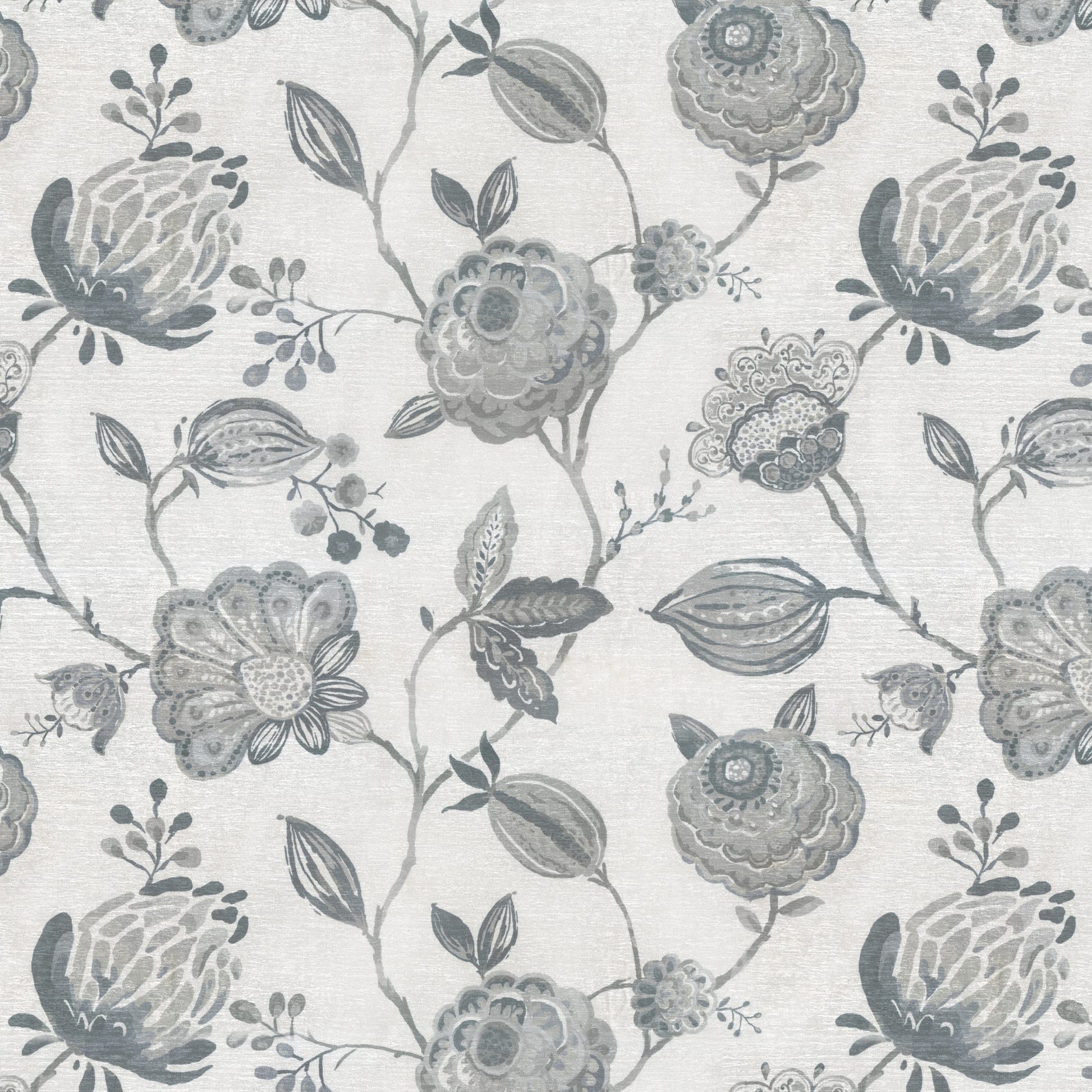 JF Fabrics AWAKEN 65 Fabric Floral,Traditional Blue,Grey Chenille - 8430465 J8591