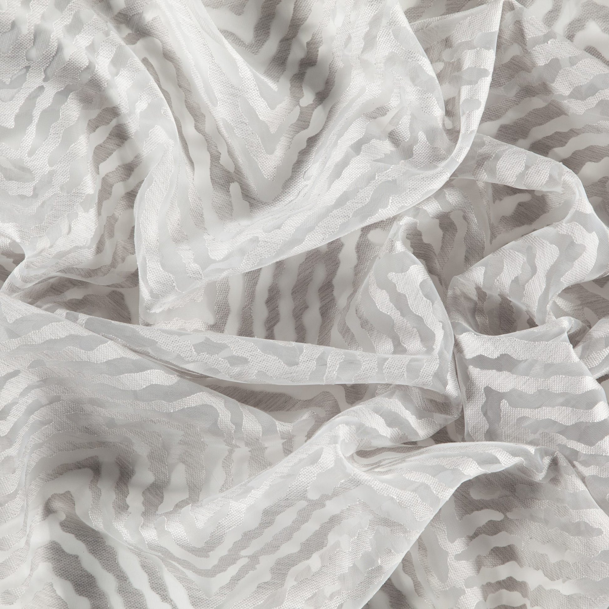 Use:Large vertical chevron design, wide width burnout sheer. In a mauve gray coloration.