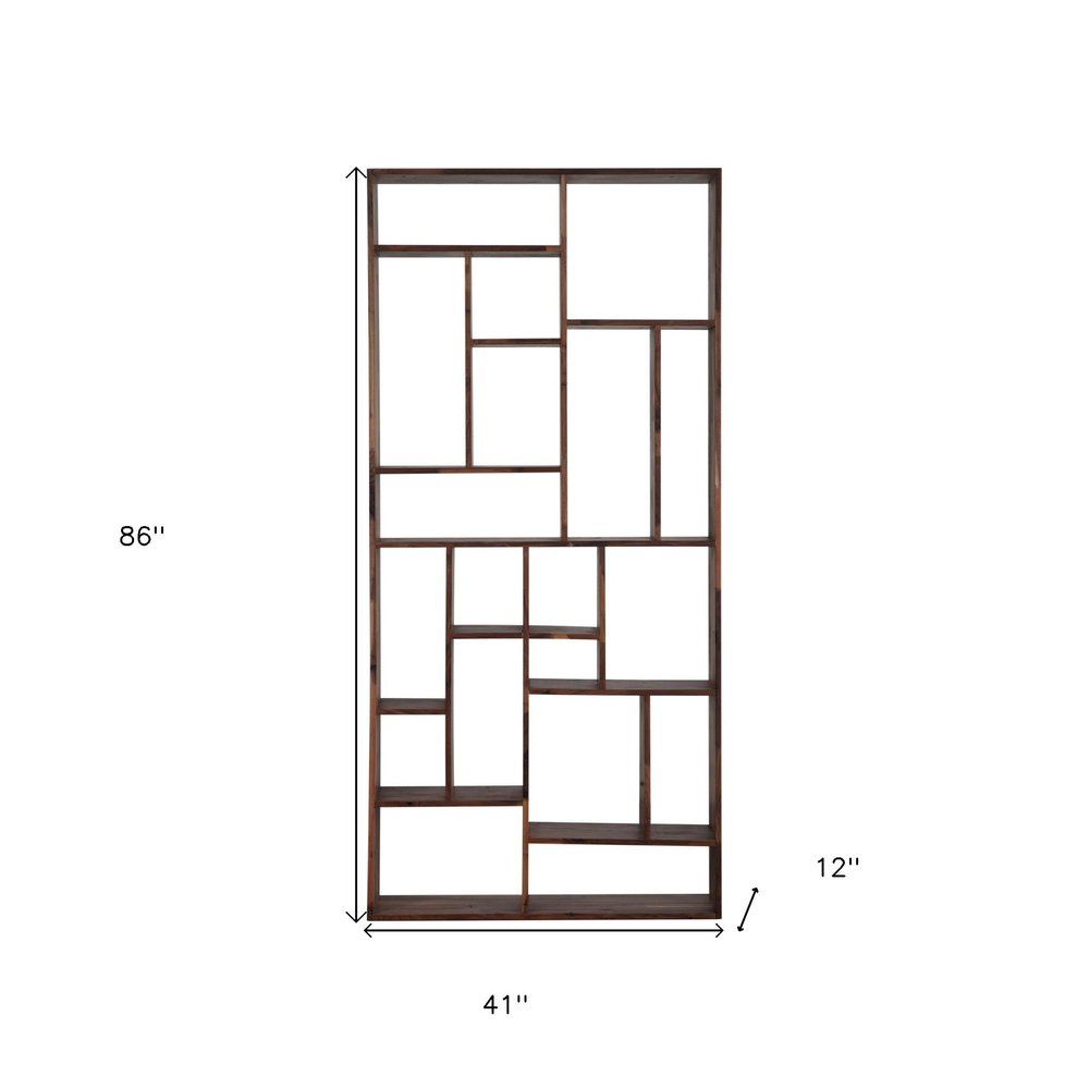 Brown And Natural Wood Ten Tier Bookcase