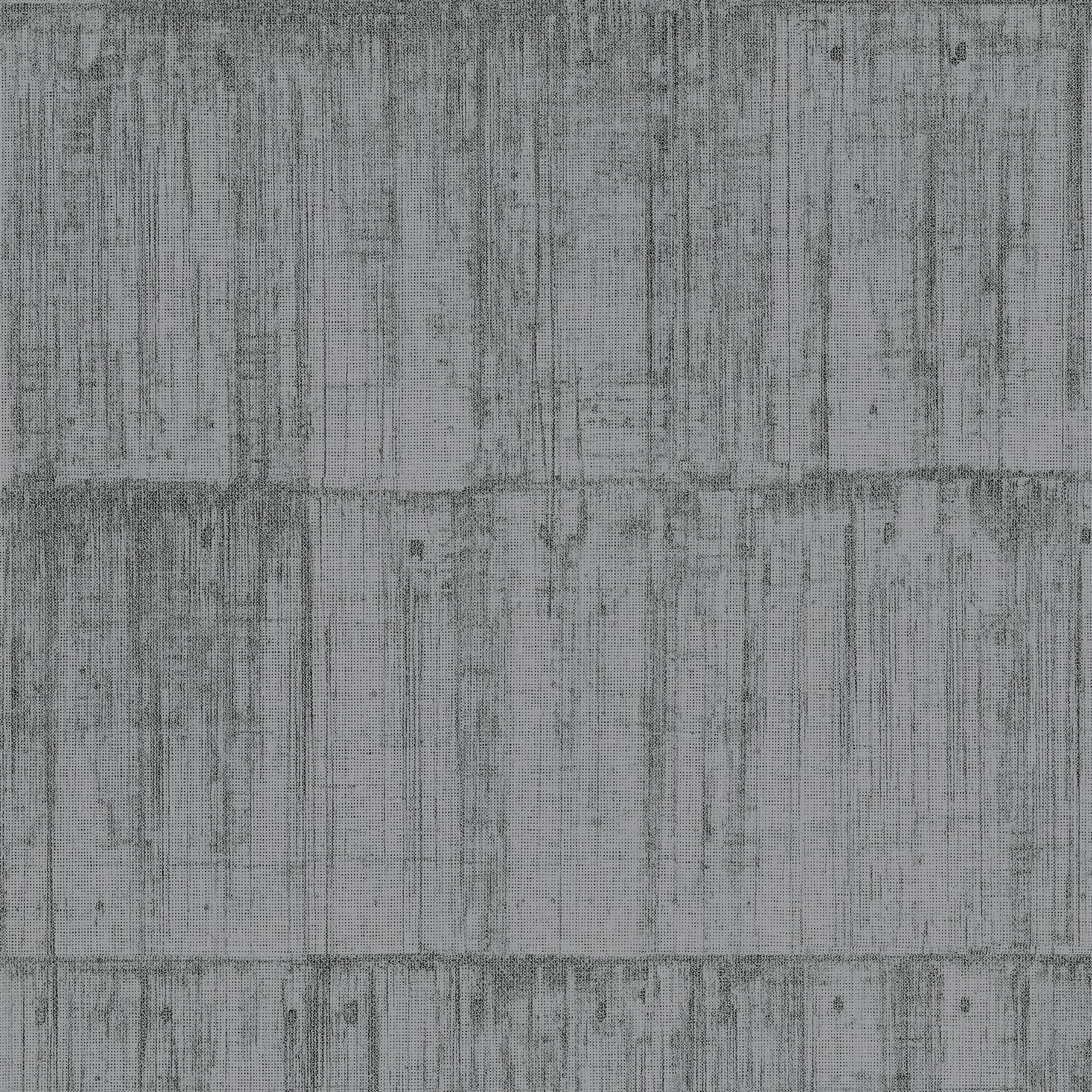 Use:Stylish faux concrete printed with metallic on tightly woven grasscloth base. Gray, black coloration on a silver metallic foil.