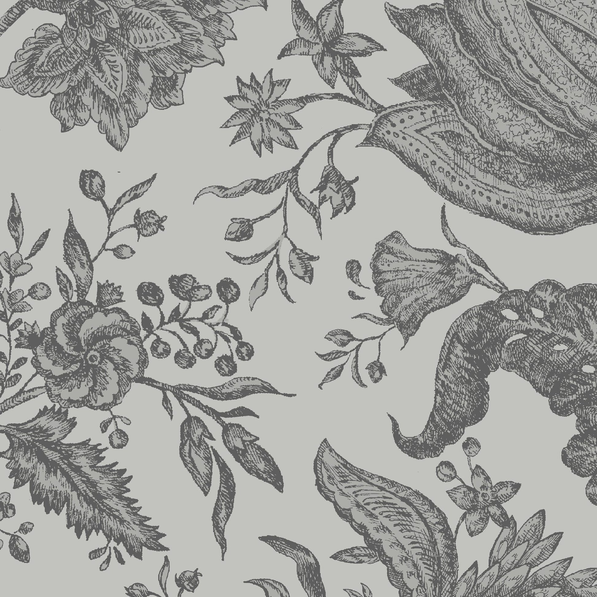 Use:Elegant grey cross hatched floral foliage on a solid subtle metallic silver background.