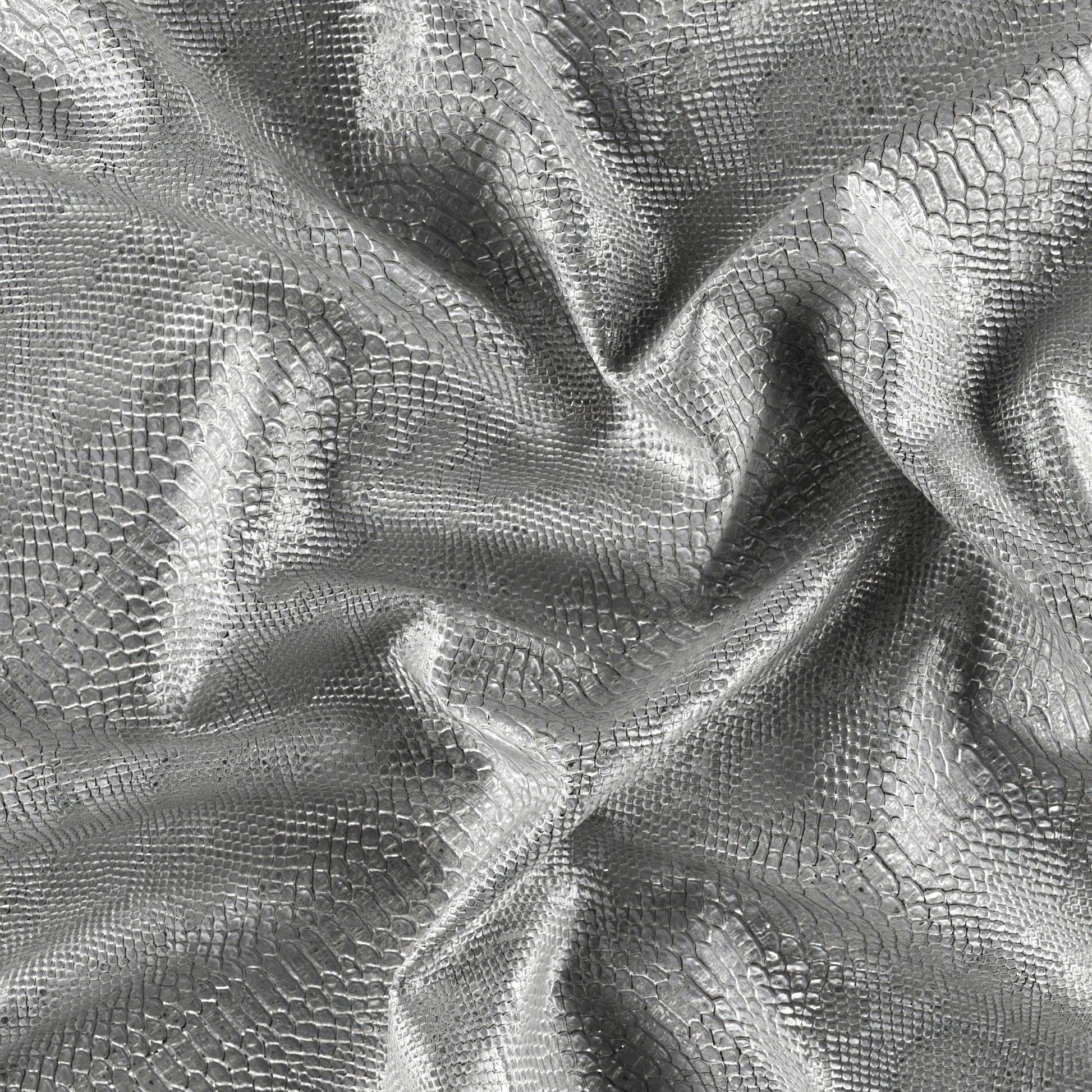 JF Fabrics SERPENT 94 Fabric Animal, Metallic, Texture Silver Vinyl, Vegan Leather - 8935194 J9011