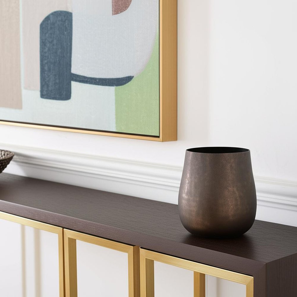 9" Antiqued Gold Aluminum Cylinder Table Vase