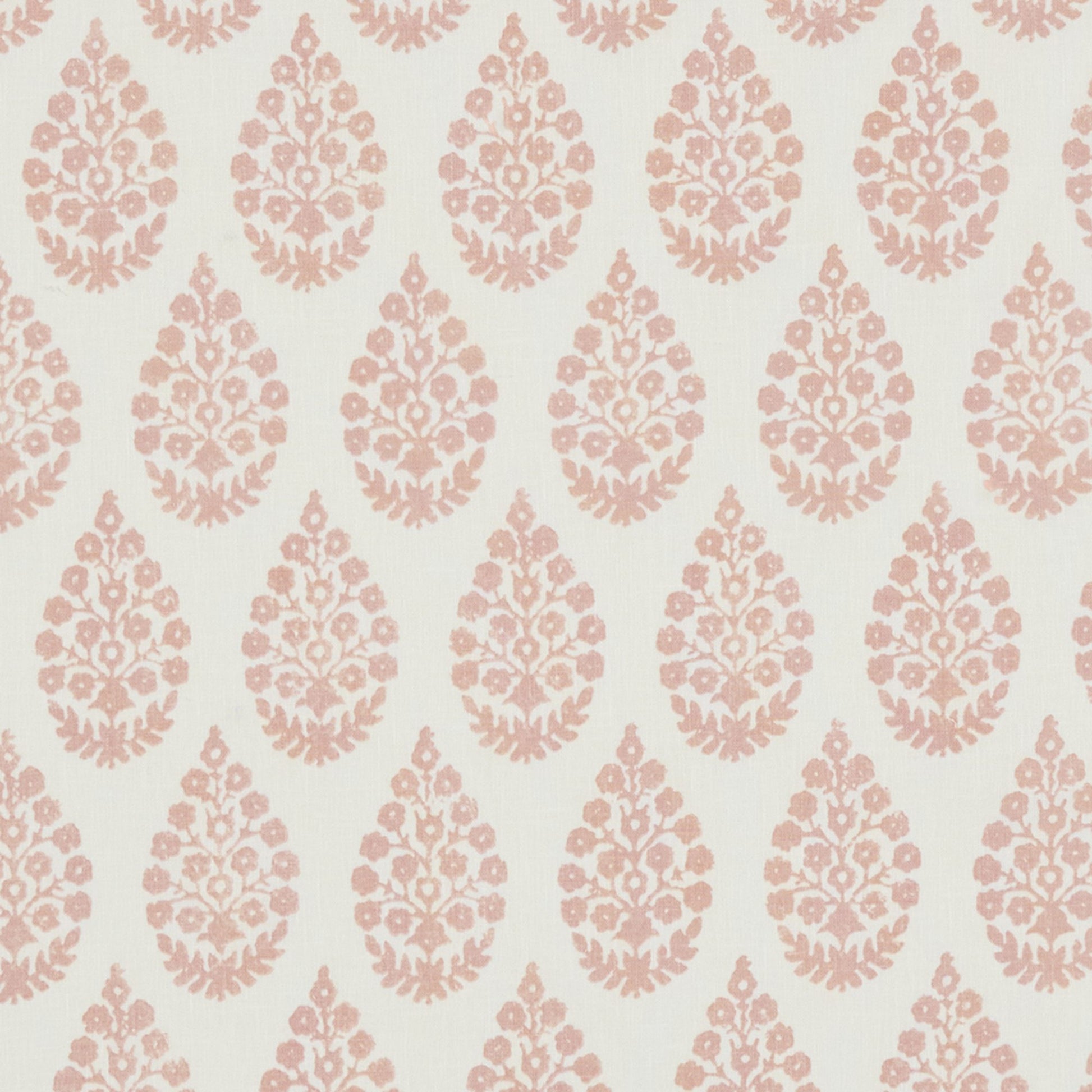 Use:A floral block printed design in the shape of a teardrop creates an updated twist on a traditional pattern. In a soft shell pink coloration.