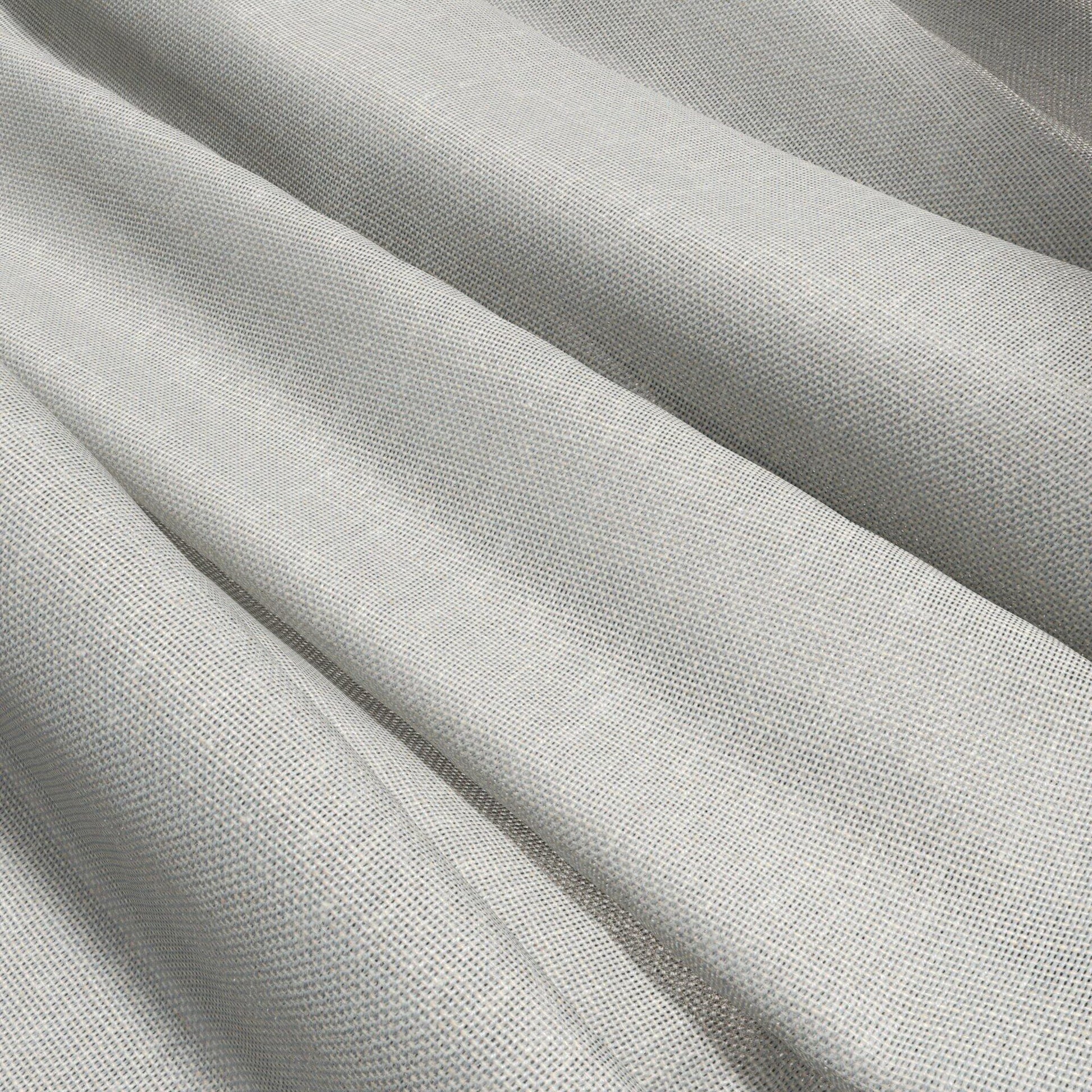 Use:A wide width, recycled polyester blend sheer. In a subtle blue coloration.