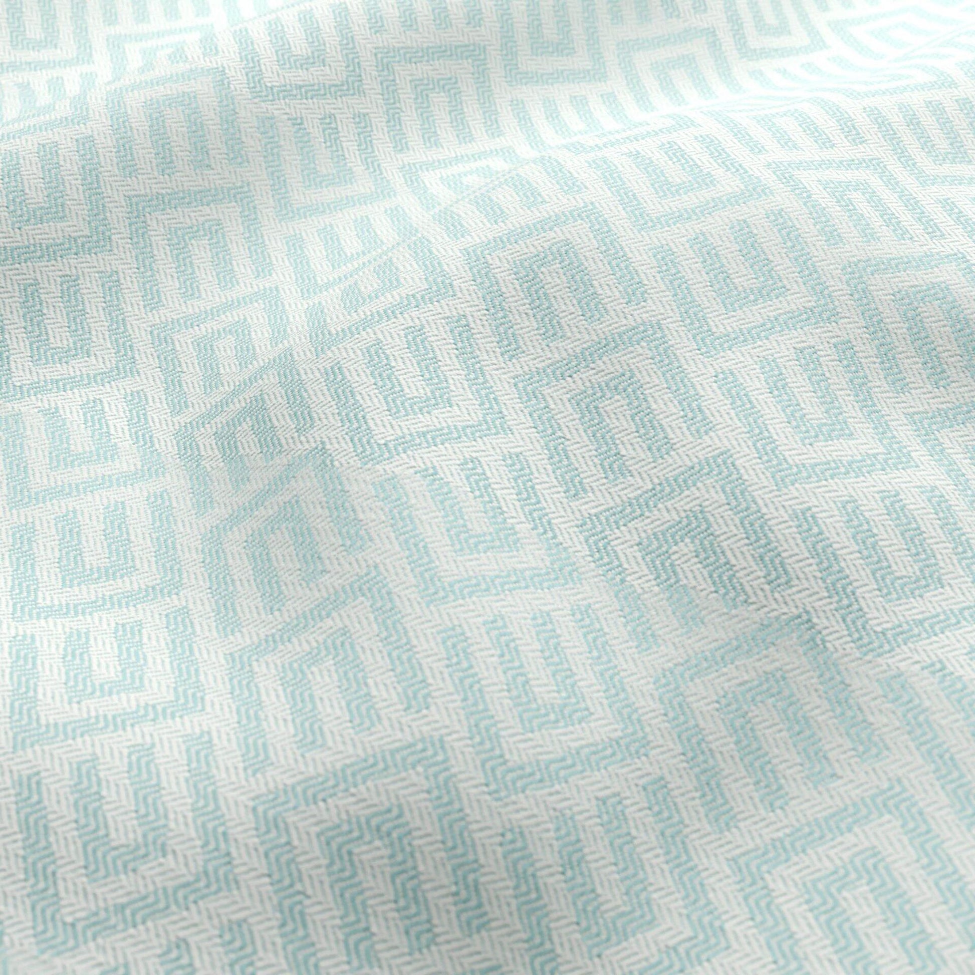 Use:A geometric jacquard with Greek key motif, in an aqua and white coloration. Finished with FibreGuard Outdoor technology.