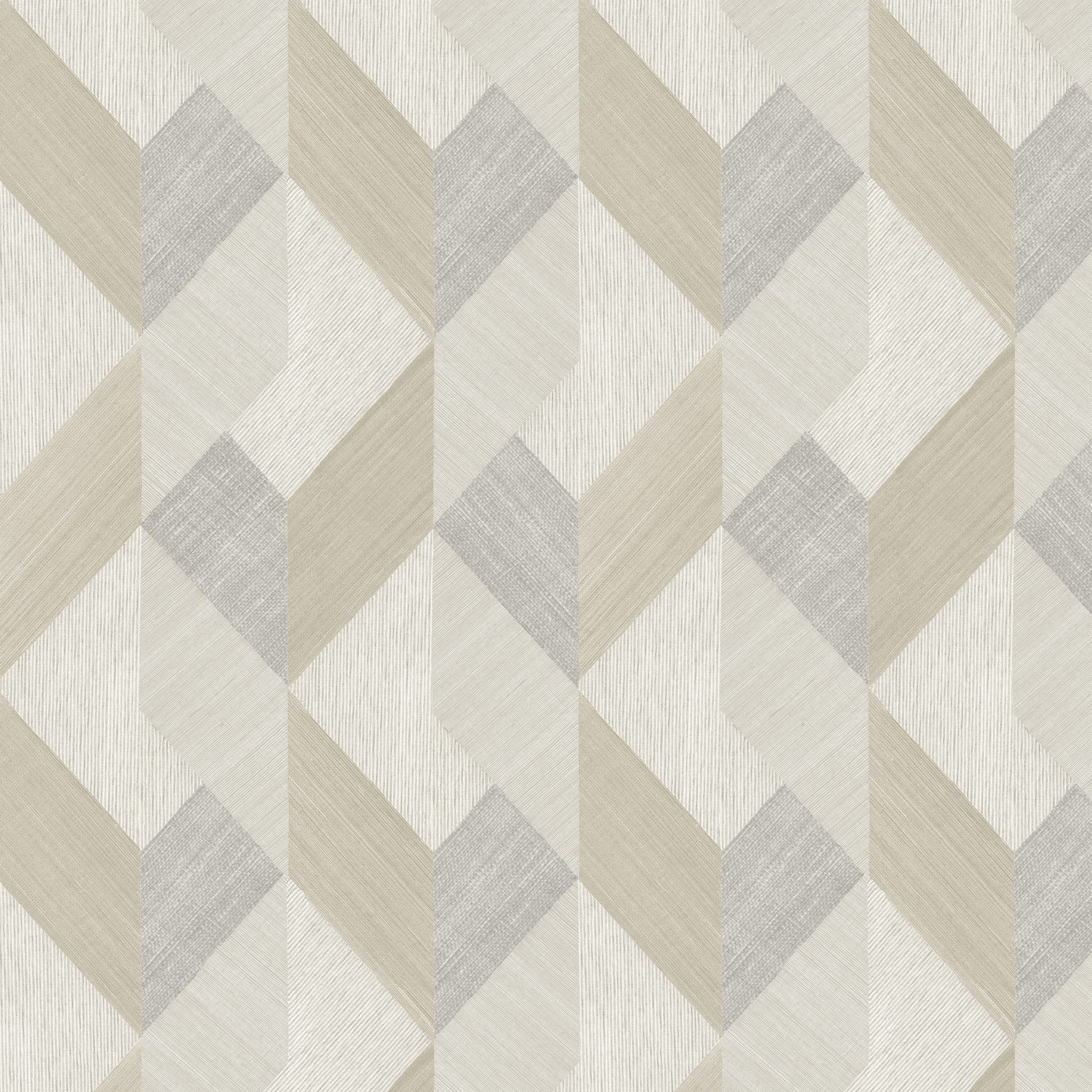 Use:A geometric design on a faux grasscloth texture. In a pale grey, white and cream coloration.