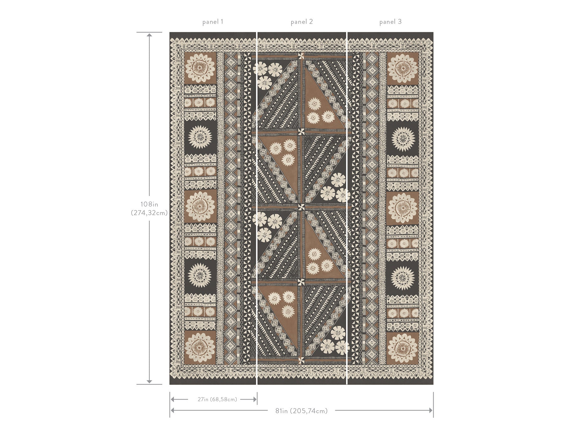 Use:Inspired by hand-loomed tapestries, Tapa Mural's tribal design celebrates the interplay of floral and geometric motifs. Seen here in a grounded palette of burnt sienna, ivory, and ebony. This Tapa Mural measures approximately 6.75-ft wide by 9-ft tall when assembled. The rich global heritage of timeless relics and hand-crafted naturals are artfully blended in this curated collection of culturally inspired designs.