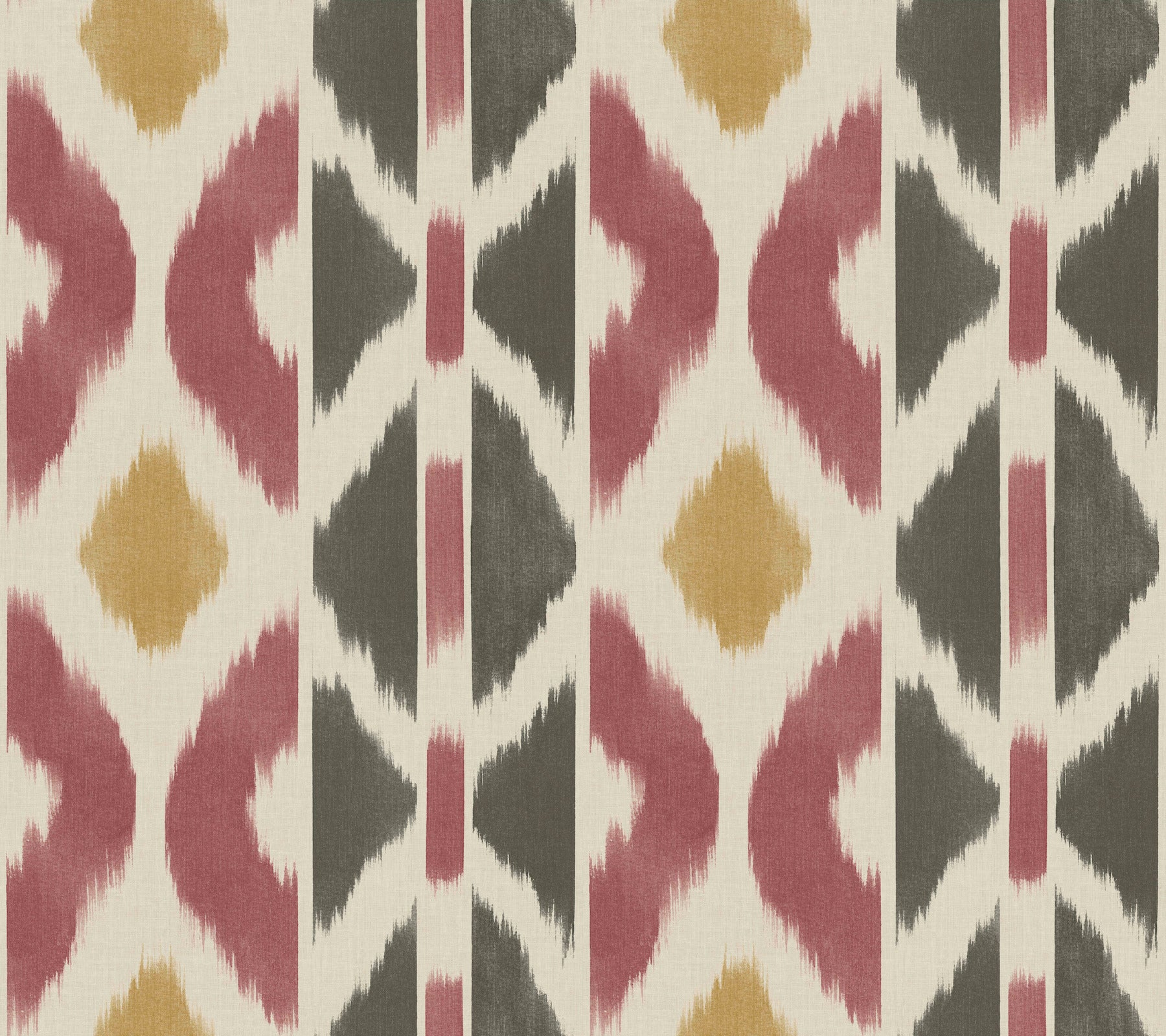 Use:Patan showcases a multitude of ikat design applications, with alternating stripes embellished with complementary diamond motifs. Seen here in a palette of raspberry, charcoal, ochre, and beige. This Patan Wallpaper measures approximately 27 inches wide by 27 feet long, measuring approximately 60.8 square feet per roll. The rich global heritage of timeless relics and hand-crafted naturals are artfully blended in this curated collection of culturally inspired designs.