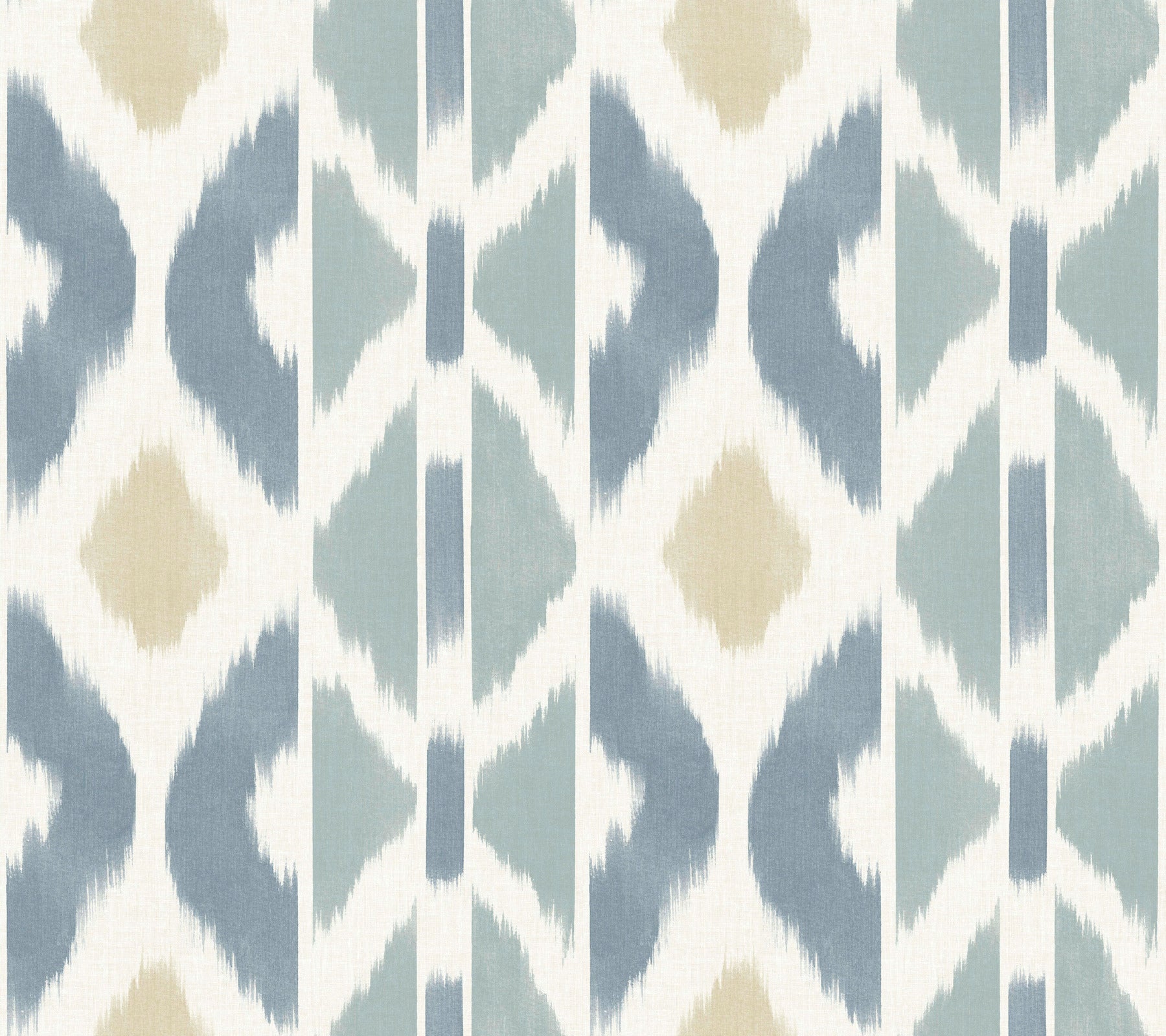 Use:Patan showcases a multitude of ikat design applications, with alternating stripes embellished with complementary diamond motifs. Seen here in a palette of denim, sky blue, beige, and white. This Patan Wallpaper measures approximately 27 inches wide by 27 feet long, measuring approximately 60.8 square feet per roll. The rich global heritage of timeless relics and hand-crafted naturals are artfully blended in this curated collection of culturally inspired designs.