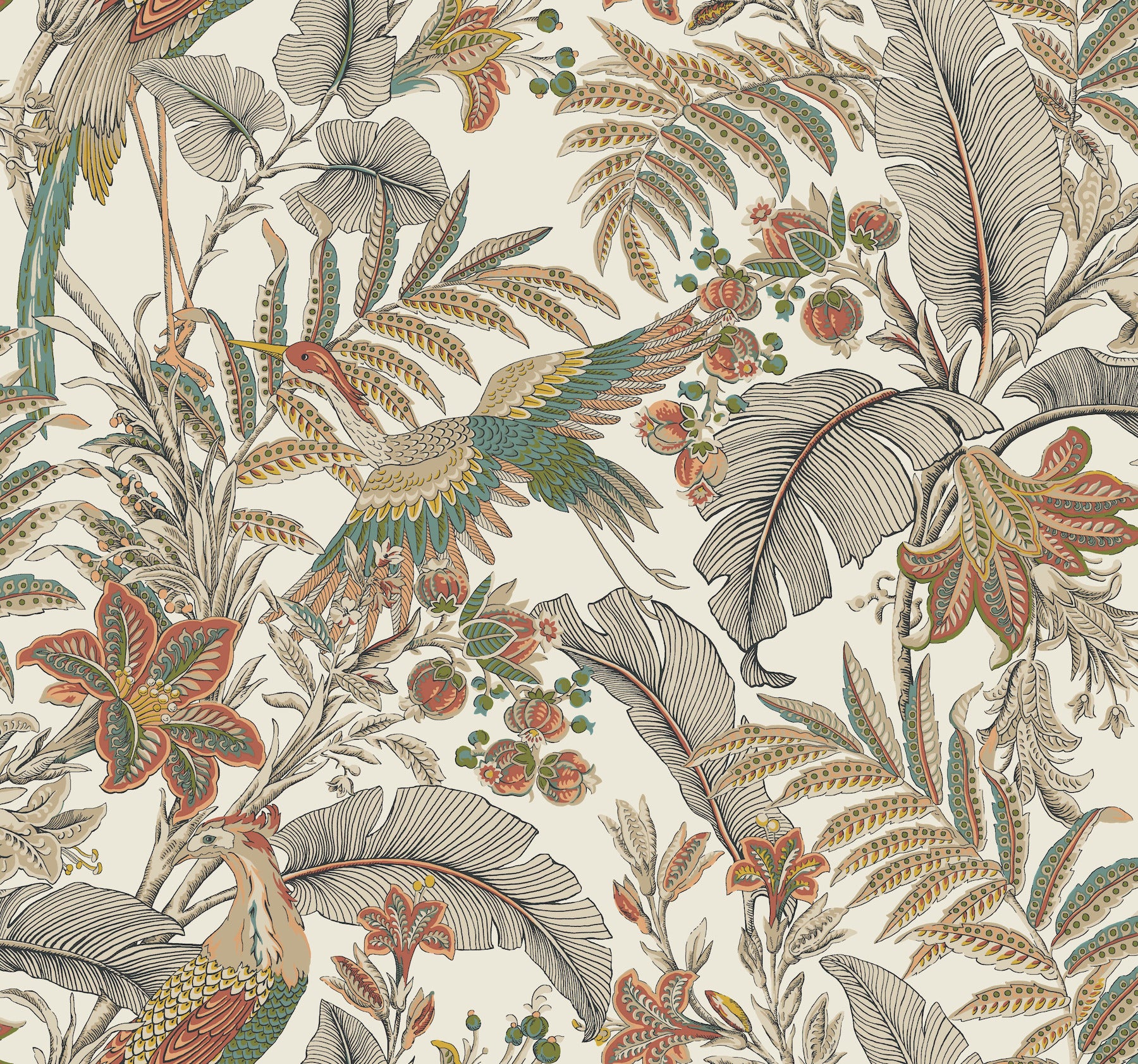 Use:A lush array of richly illustrated flowers and fronds nearly hide the statuesque figures of these iconic wading birds in pattern Heronwood. Featured here in a palette of terracotta, persimmon, turquoise, moss, ochre, taupe, and alabaster. This Heronwood Wallpaper measures approximately 27 inches wide by 27 feet long, measuring approximately 60.8 square feet per roll. The rich global heritage of timeless relics and hand-crafted naturals are artfully blended in this curated collection of culturally inspired designs.