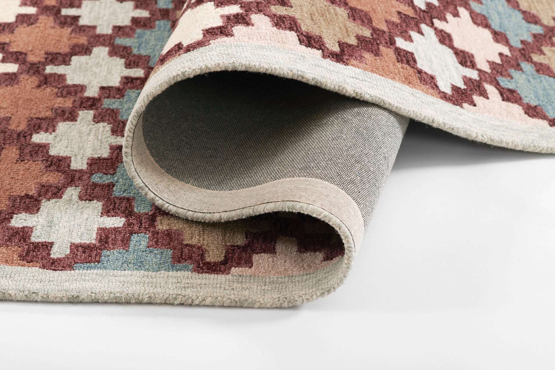 About Us:Momeni Rugs.A modern take on timeless design, this hand-tufted rug from the Abbot Collection features a bold cross motif inspired by traditional Turkish Kilims, reinterpreted in a contemporary palette of terracotta, rose, soft blue, sage, and ivory. The rhythmic repetition of geometric shapes brings structure, while the warm, layered tones offer depth and vibrancy. Crafted from 100% wool, this rug is naturally soft, resilient, and low-shed?designed for both comfort and longevity. The Abbott Collection draws inspiration from vintage Turkish Kilims, reinterpreting these classic designs with modern, sophisticated color palettes. Crafted with durable wool tufted construction, each rug in the collection is resilient and resistant to shedding. The diverse designs offer timeless aesthetics in elegant, refined colors, making them a perfect blend of tradition and contemporary style.