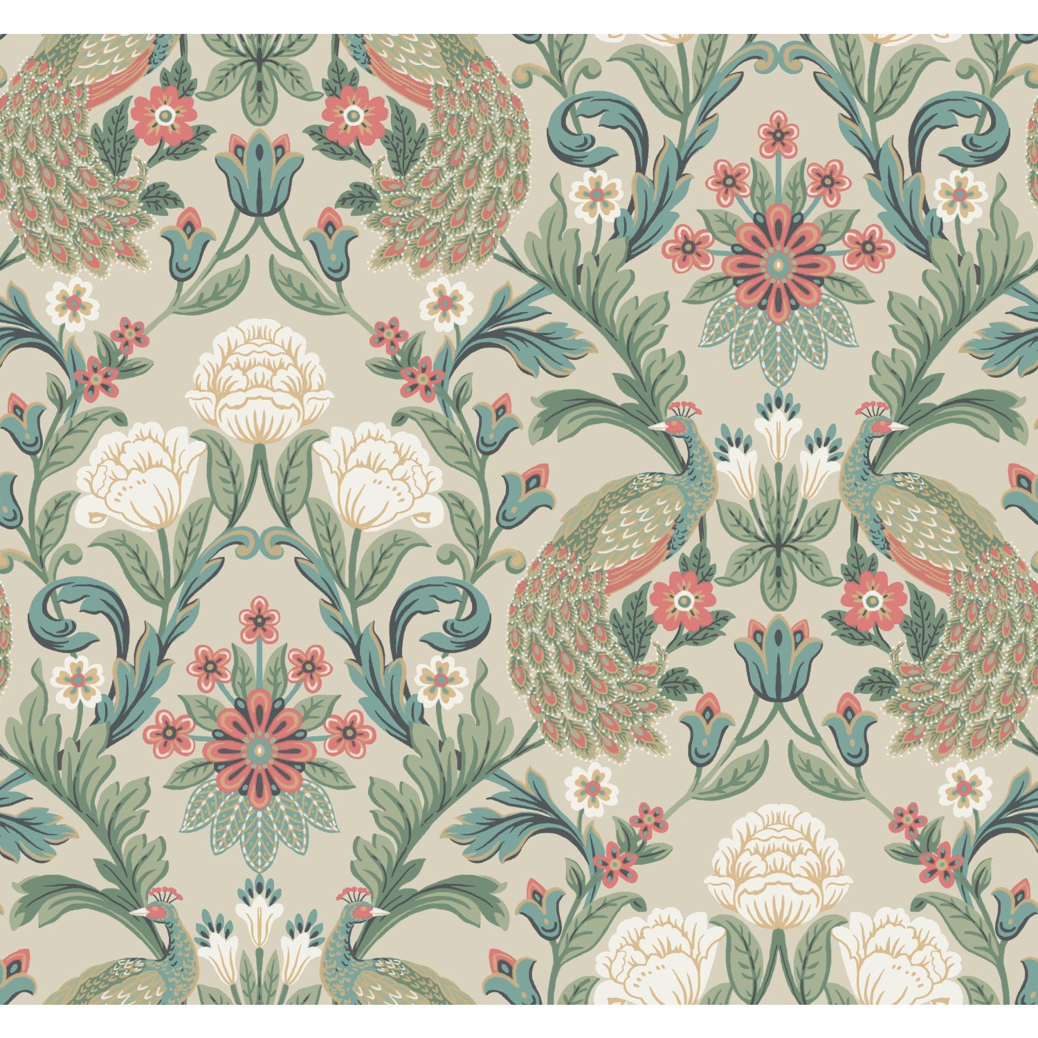 York Wallcoverings Arts and Crafts Plume Dynasty Taupe Wallpaper Damasks Neutrals Wallpaper - AC9104
