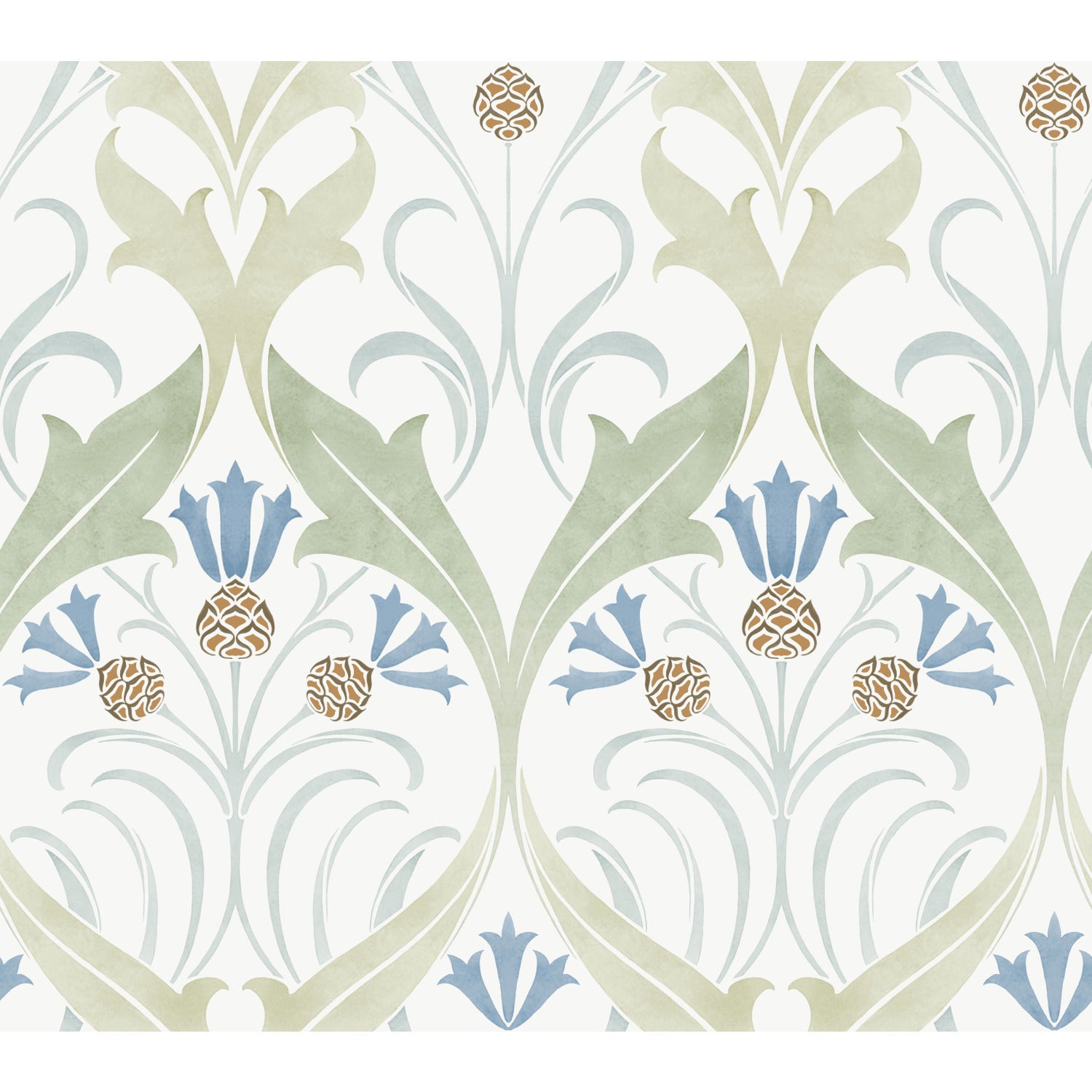 York Wallcoverings Arts and Crafts Pine Cone Ribbon Green and Blue Metallic Wallpaper Florals and Flowers Blues Wallpaper - AC9173