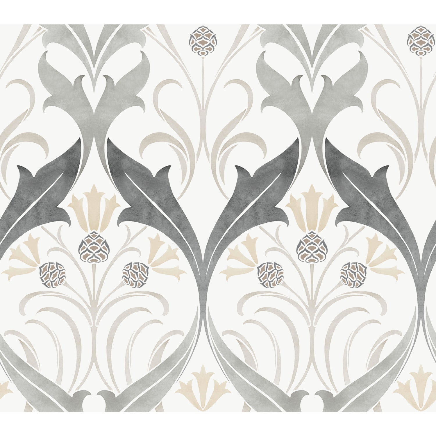York Wallcoverings Arts and Crafts Pine Cone Ribbon Charcoal Metallic Wallpaper Florals and Flowers Greys Wallpaper - AC9174