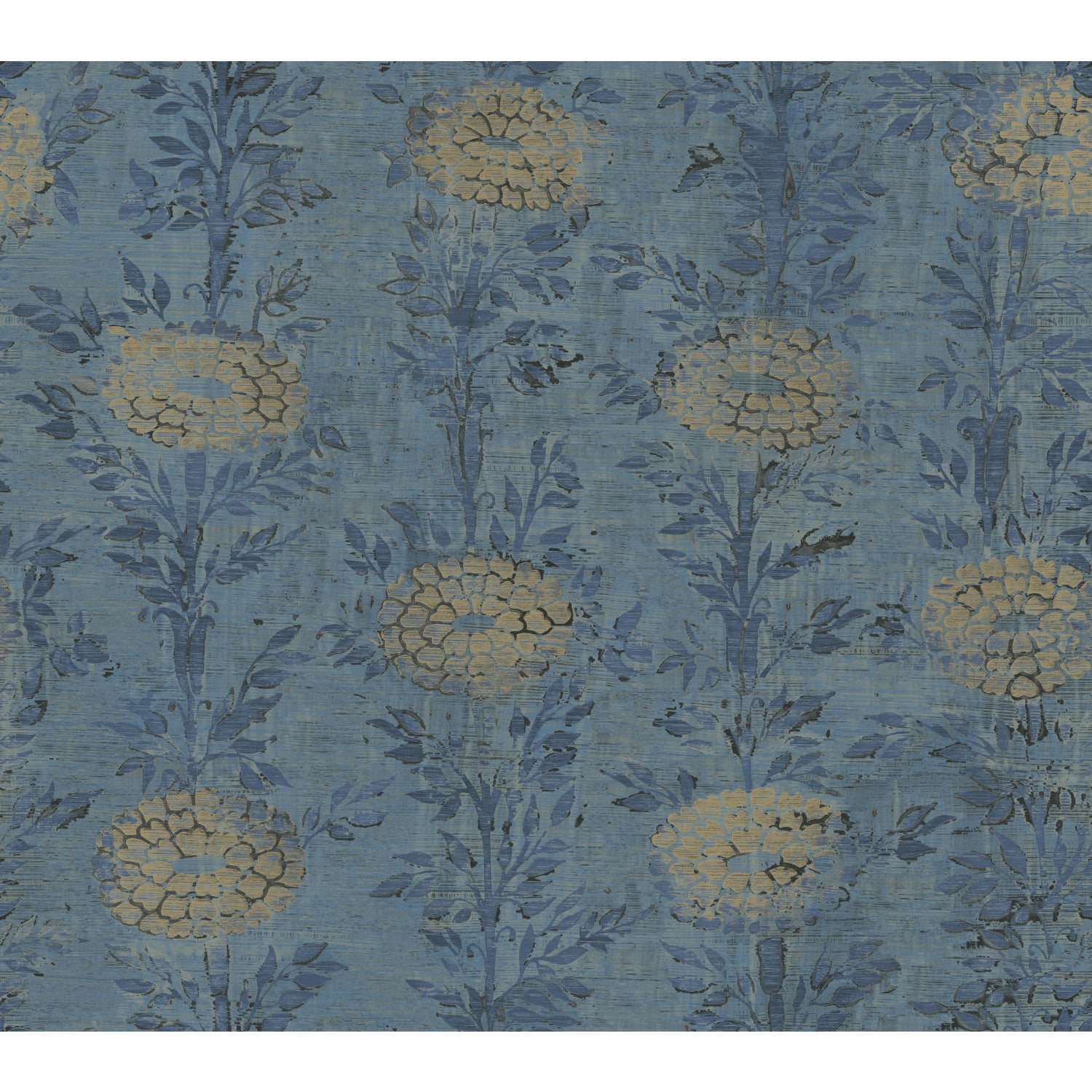 York Wallcoverings Tea Garden French Marigold Denim and Gold Wallpaper Eclectic Florals Blues Wallpaper - AF6520