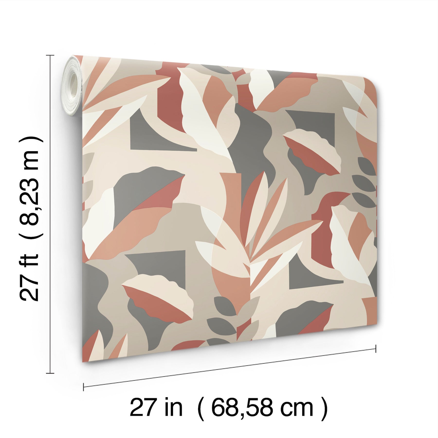Use:Tropical flora has been reduced and reimagined as a series of striking color blocked forms in Papier Colle, the leaves inked in shades of red, coral, grey, creamy beige and white. This Papier Colle Wallpaper measures approximately 27 inches wide by 27 feet long, measuring approximately 60.8 square feet per roll. Artistic experimentation with the interplay of form, color and texture has led to an avant-garde reimagining of familiar design motifs.