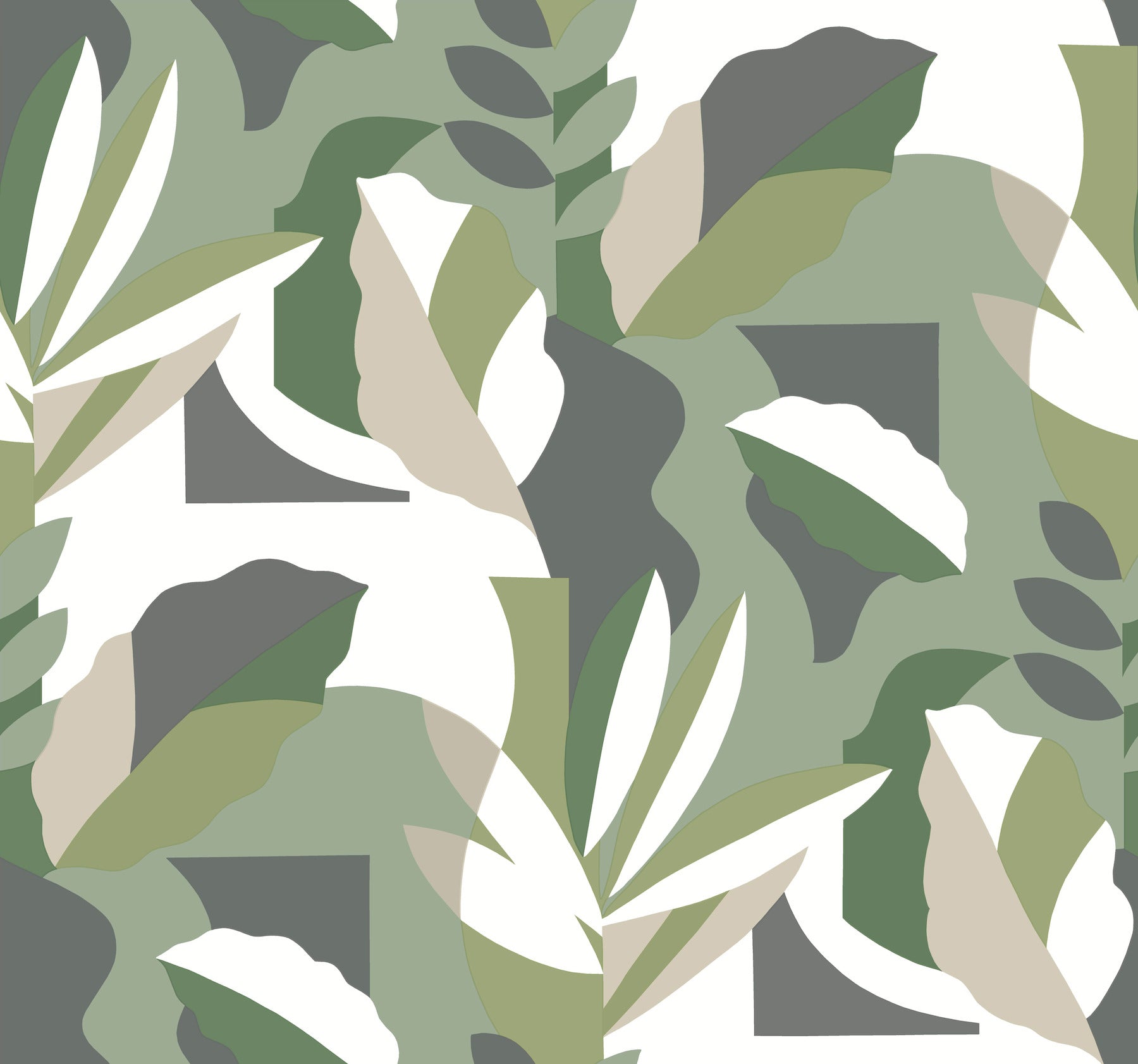 York Wallcoverings Artistic Abstracts Papier Colle Green Wallpaper Bohemian Botanical Greens Wallpaper - AG2005
