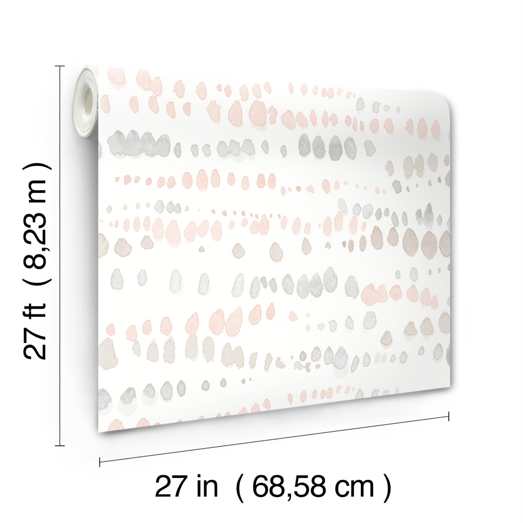 Use:Rows of light pink, taupe, and blue-grey watercolors add decorative drips in artistically refined Dewdrops. This Dewdrops Wallpaper measures approximately 27 inches wide by 27 feet long, measuring approximately 60.8 square feet per roll. Artistic experimentation with the interplay of form, color and texture has led to an avant-garde reimagining of familiar design motifs.