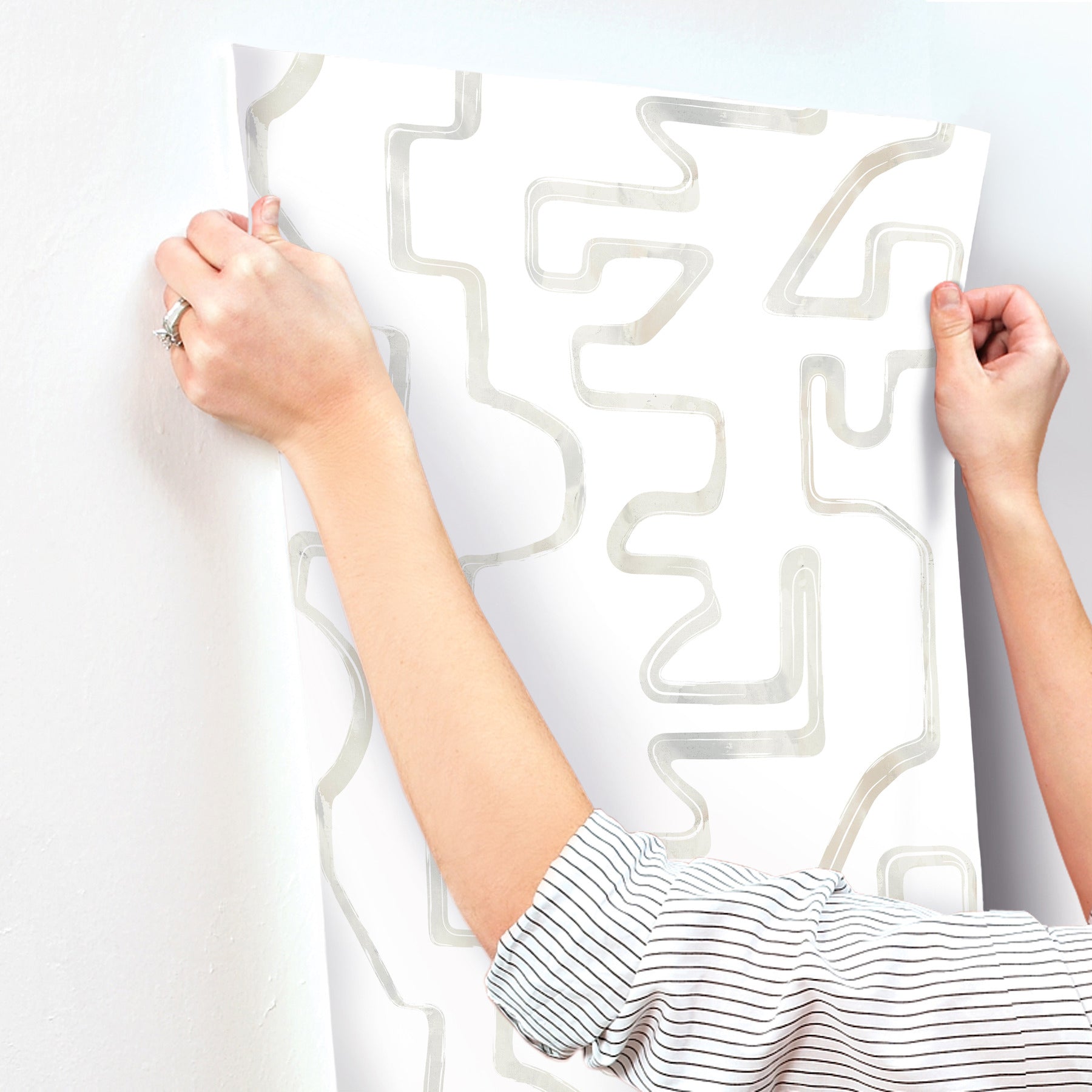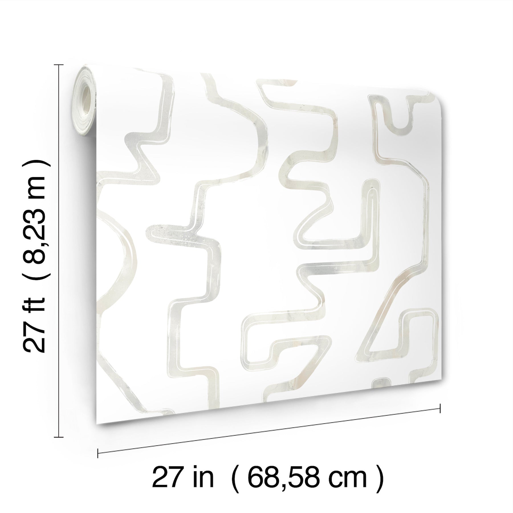Use:Abstract Aura's free-flowing lines hold hidden depth with marbled, light grey watercolor detailing. This Abstract Aura Wallpaper measures approximately 27 inches wide by 27 feet long, measuring approximately 60.8 square feet per roll. Artistic experimentation with the interplay of form, color and texture has led to an avant-garde reimagining of familiar design motifs.