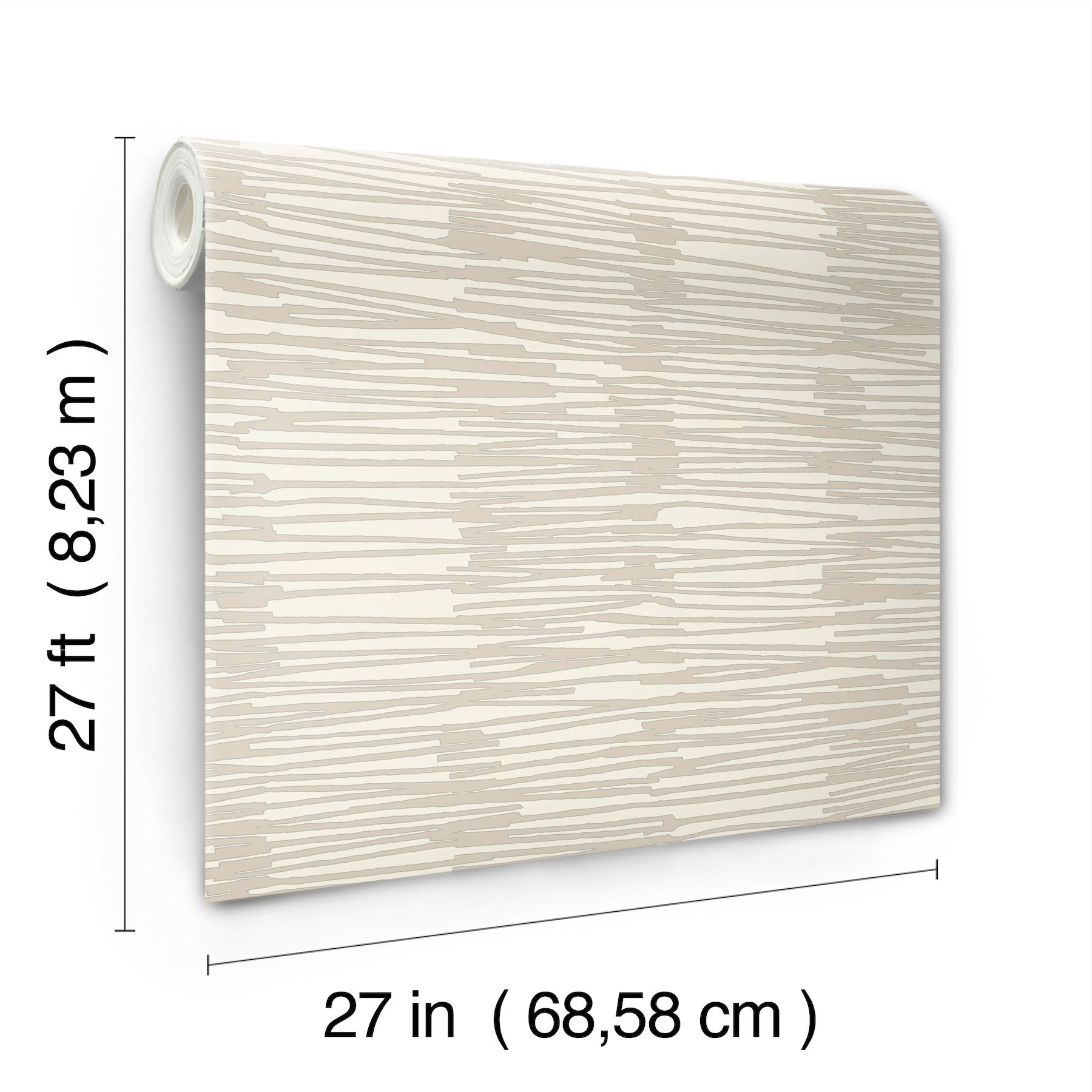 Use:Add dynamic interest to your interiors with Water Reed Thatch's dynamic interplay between interlaced and jagged beige and cream stripes and contrasting metallic outlining. This Water Reed Thatch Wallpaper measures approximately 27 inches wide by 27 feet long, measuring approximately 60.8 square feet per roll. Artistic experimentation with the interplay of form, color and texture has led to an avant-garde reimagining of familiar design motifs.