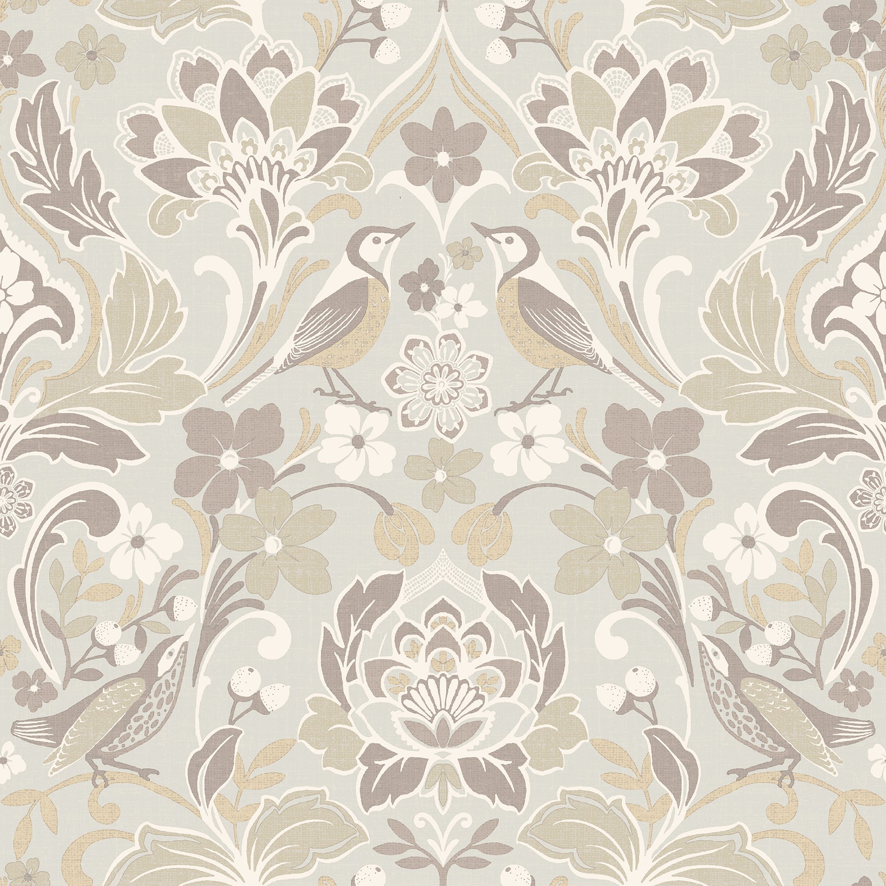 Pattern: AH100196AH / Birdy Neutral Nuthatch Floral Wallpaper