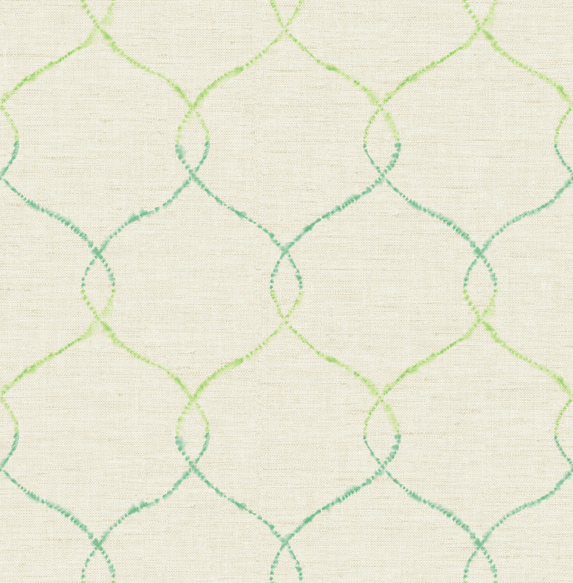 Seabrook Designs Shibori Lattice Floral Contemporary Lime Green, Teal, , Metallic Pearl - AH41601