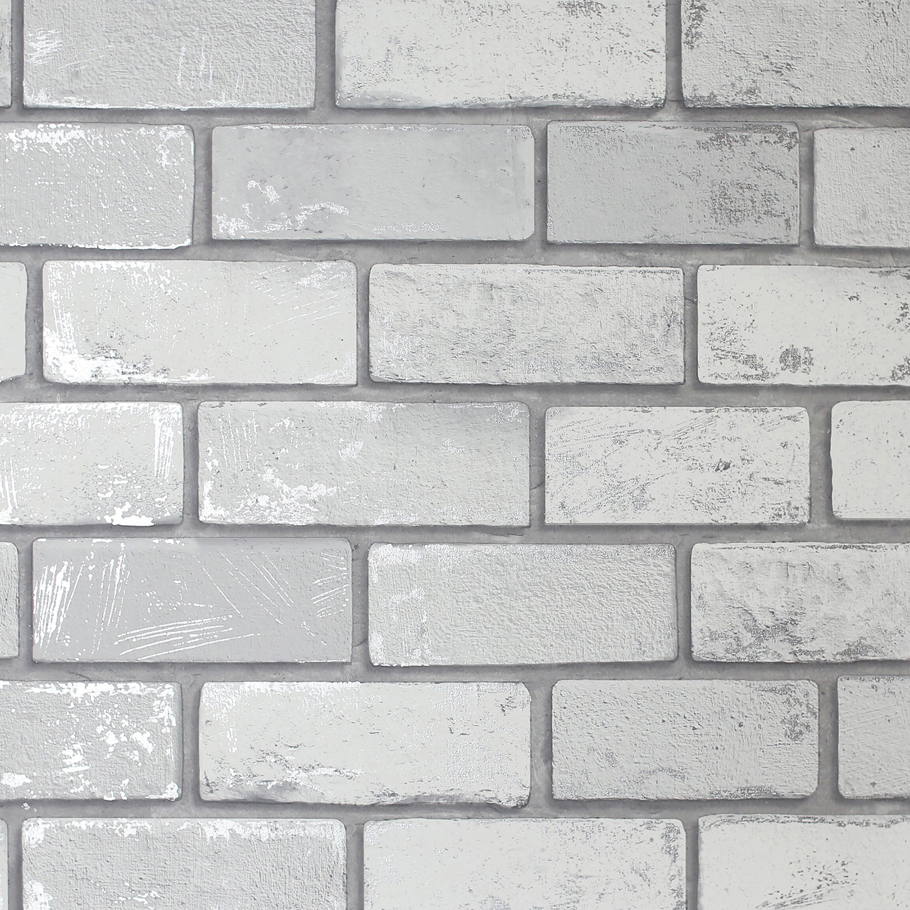 Use:The classic appeal of brick with a hint of modern flair. This wallpaper features pale grey and white bricks brushed with streaks of metallic silver. Myron is an unpasted, paper wallpaper measuring 20.9 inches wide by 33 feet long, covering approximately 57.5 square feet per roll. Unpasted paper material; 25.2-in repeat, drop match; Washable and peelable; 20.9-in by 33-ft long roll; Covers about 57.5 square feet