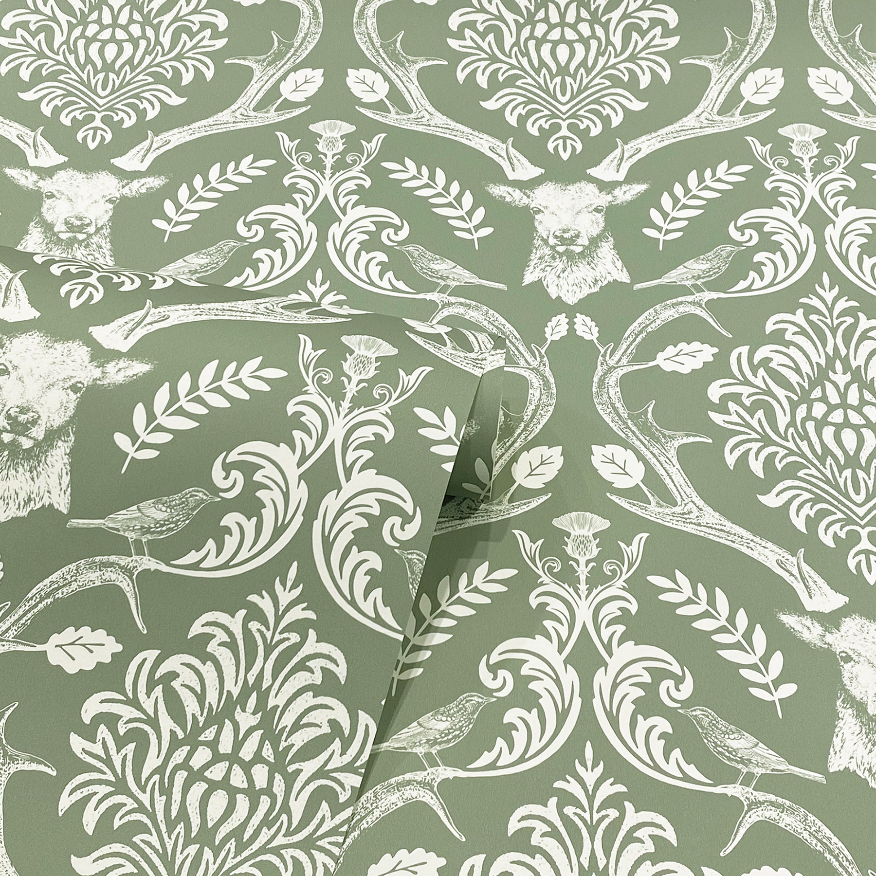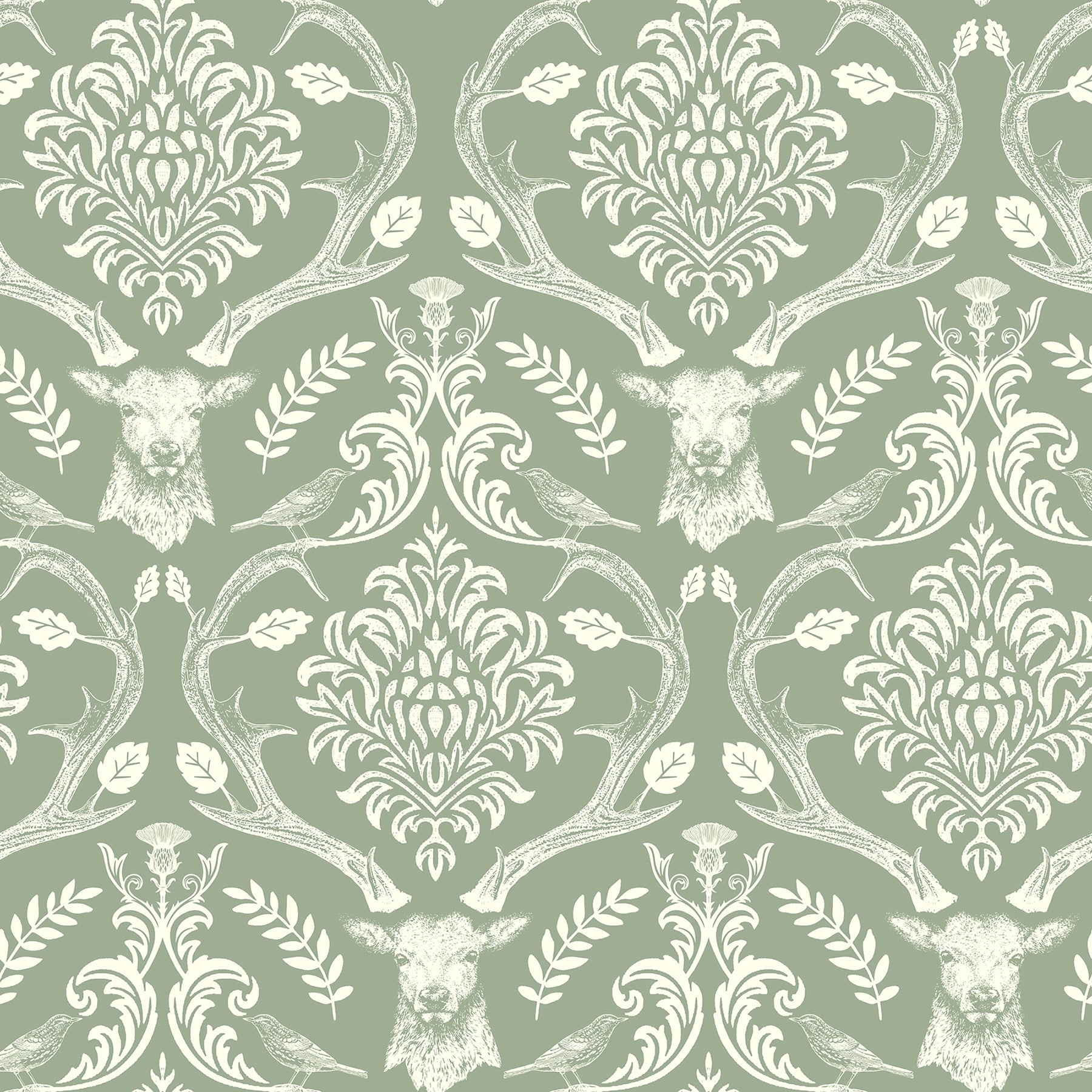 York Wallcoverings Arthouse Wickham Green Stag Damask Wallpaper Animals Farmhouse Green Wallpaper - AH923706