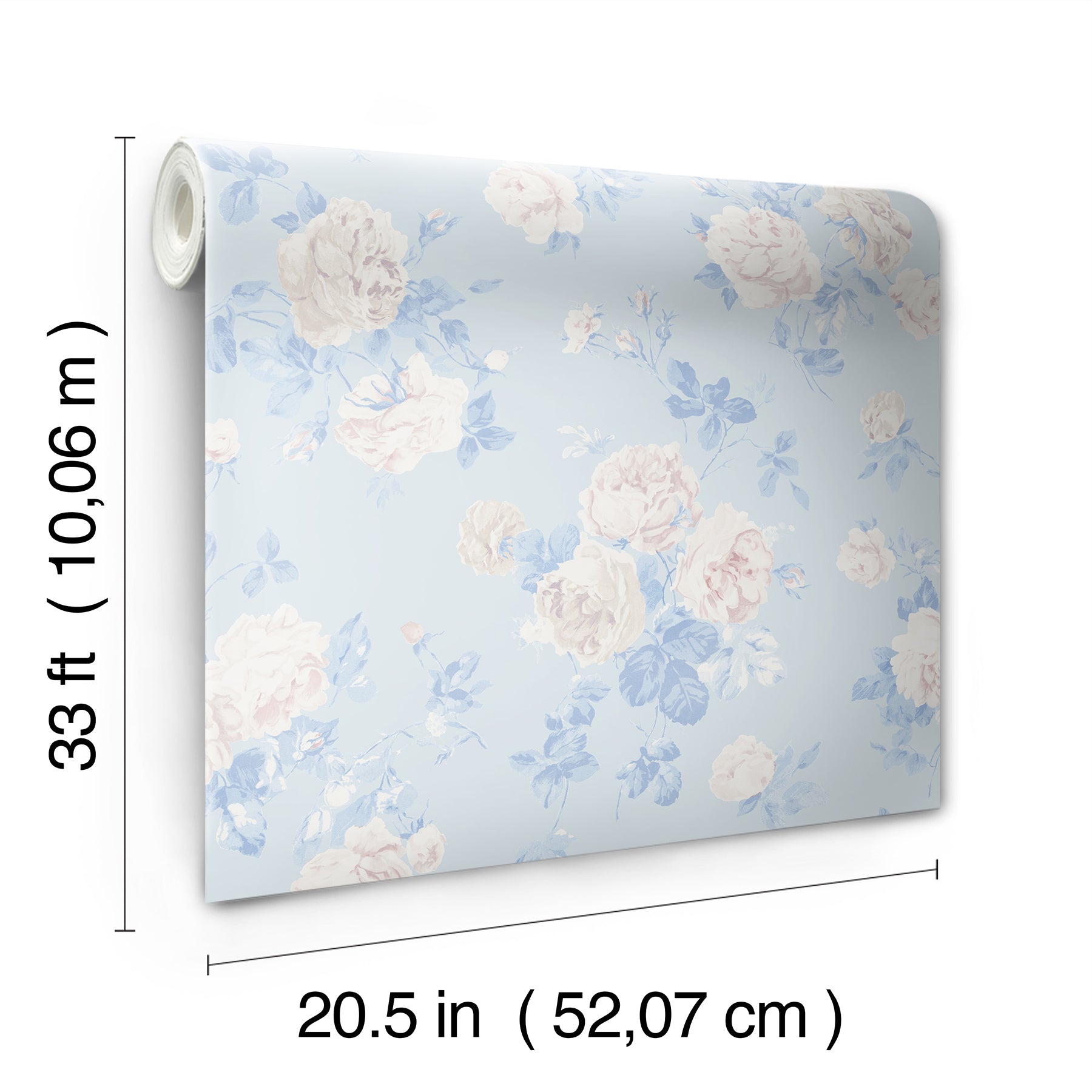 York Wallcoverings A-Street Prints Everblooming Rosettes Whisper Blue Cabbage Rose Bouquets Wallpaper Botanical Vintage Whisper Blue Wallpaper - AST6492