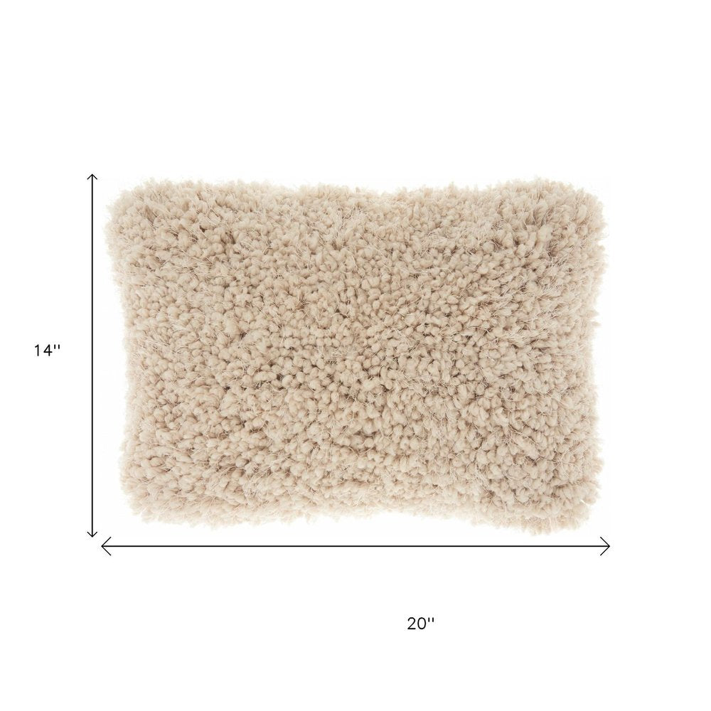 14" X 20" Beige Fabric Lumbar Throw Pillow