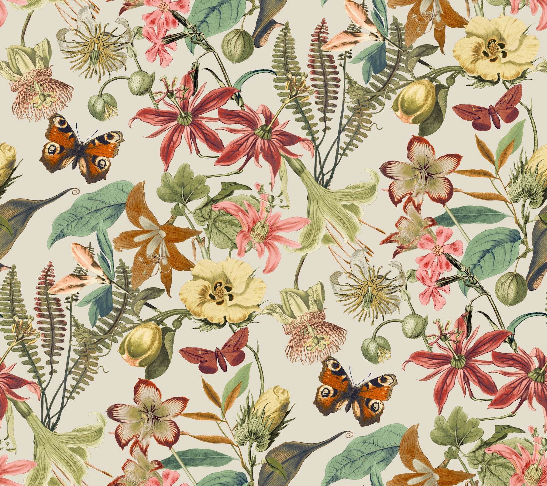 Use:A garden of exotic blooms is visited by drifting butterflies in pattern Butterfly House featuring a color palette with green and coral on a taupe background. This Butterfly House Wallpaper measures approximately 27 inches wide by 27 feet long, measuring approximately 60.8 square feet per roll. Florals speak the language of ever-evolving style with instant connection and iconic form that confidently compliments any space and every design signature.