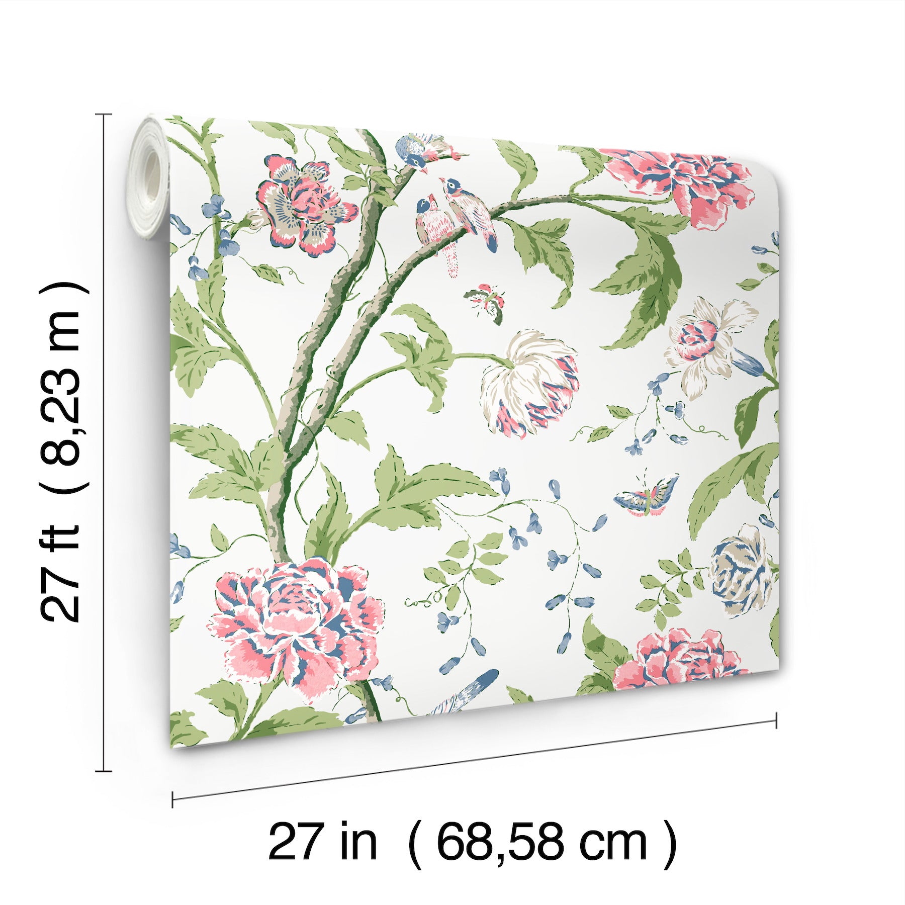 Use:Robins gossip along the branches of voluptuous flowers as butterflies visit the more delicate blooms in pattern Teahouse Floral featuring pink, off white and green on white. This Teahouse Floral Wallpaper measures approximately 27 inches wide by 27 feet long, measuring approximately 60.8 square feet per roll. Florals speak the language of ever-evolving style with instant connection and iconic form that confidently compliments any space and every design signature.