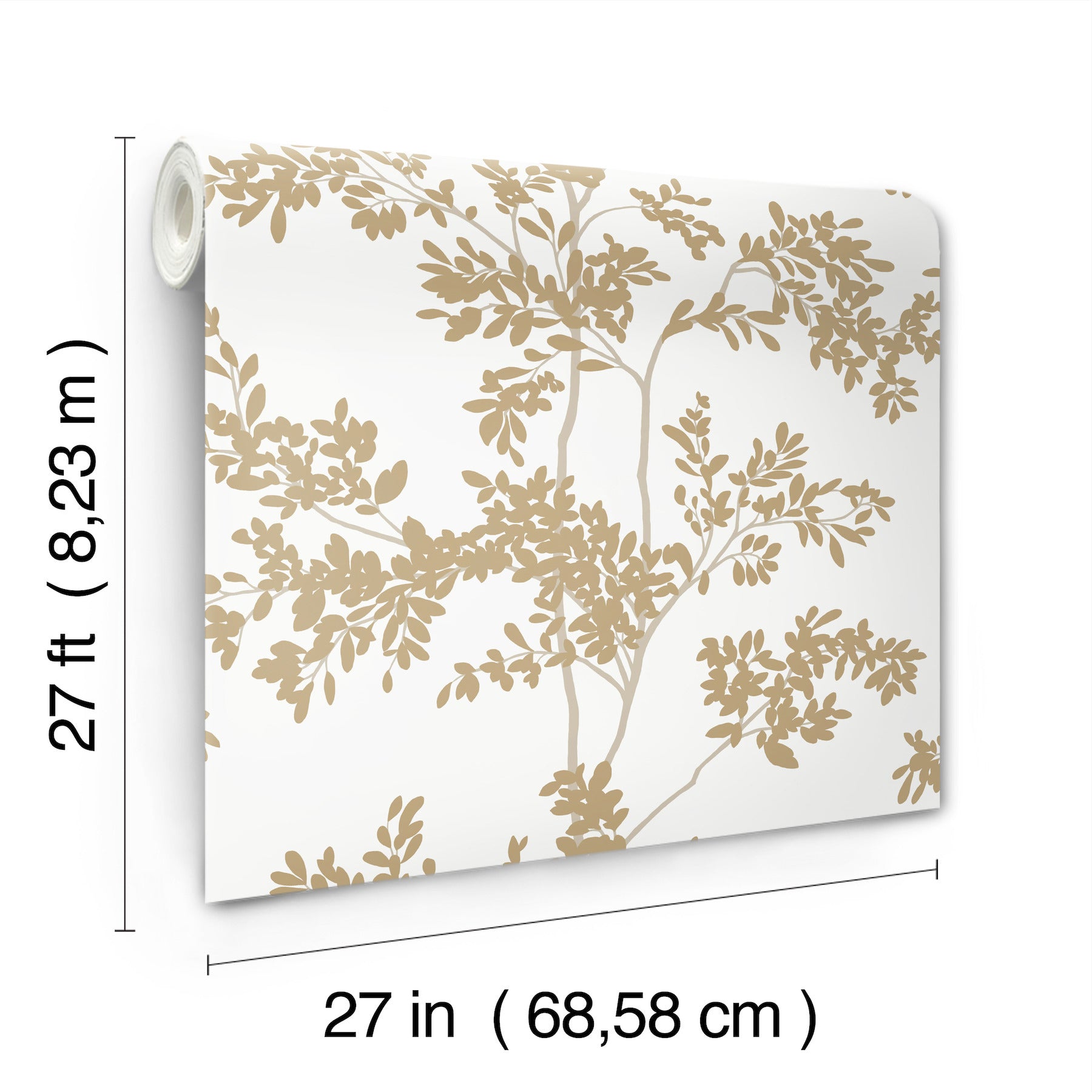 Use:Spindly branches laden with delicate yet densely-packed leaves climb forever upwards in pattern Lunaria Silhouette in gold and white. This Lunaria Silhouette Wallpaper measures approximately 27 inches wide by 27 feet long, measuring approximately 60.8 square feet per roll. Florals speak the language of ever-evolving style with instant connection and iconic form that confidently compliments any space and every design signature.