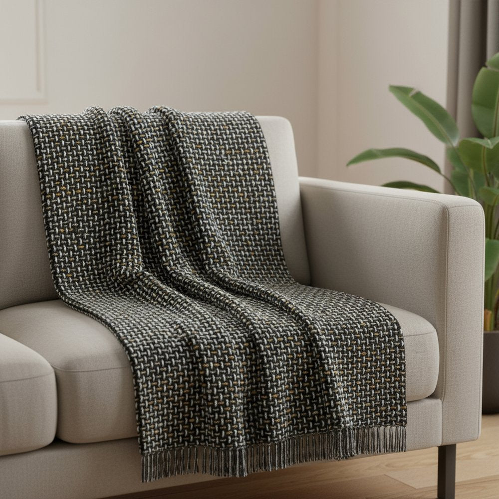 50" X 60" Black And Gold Geometric Cotton Woven Throw Blanket with Tassels
