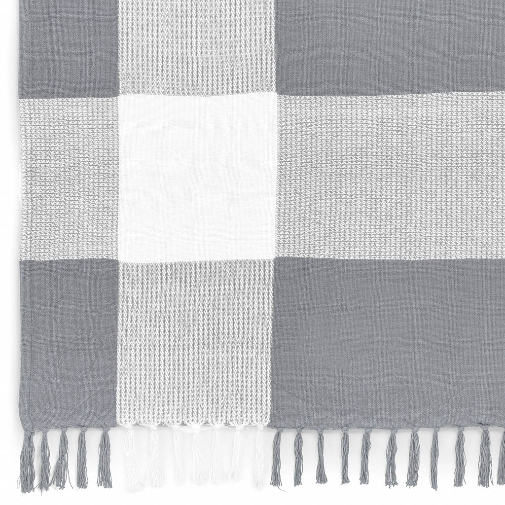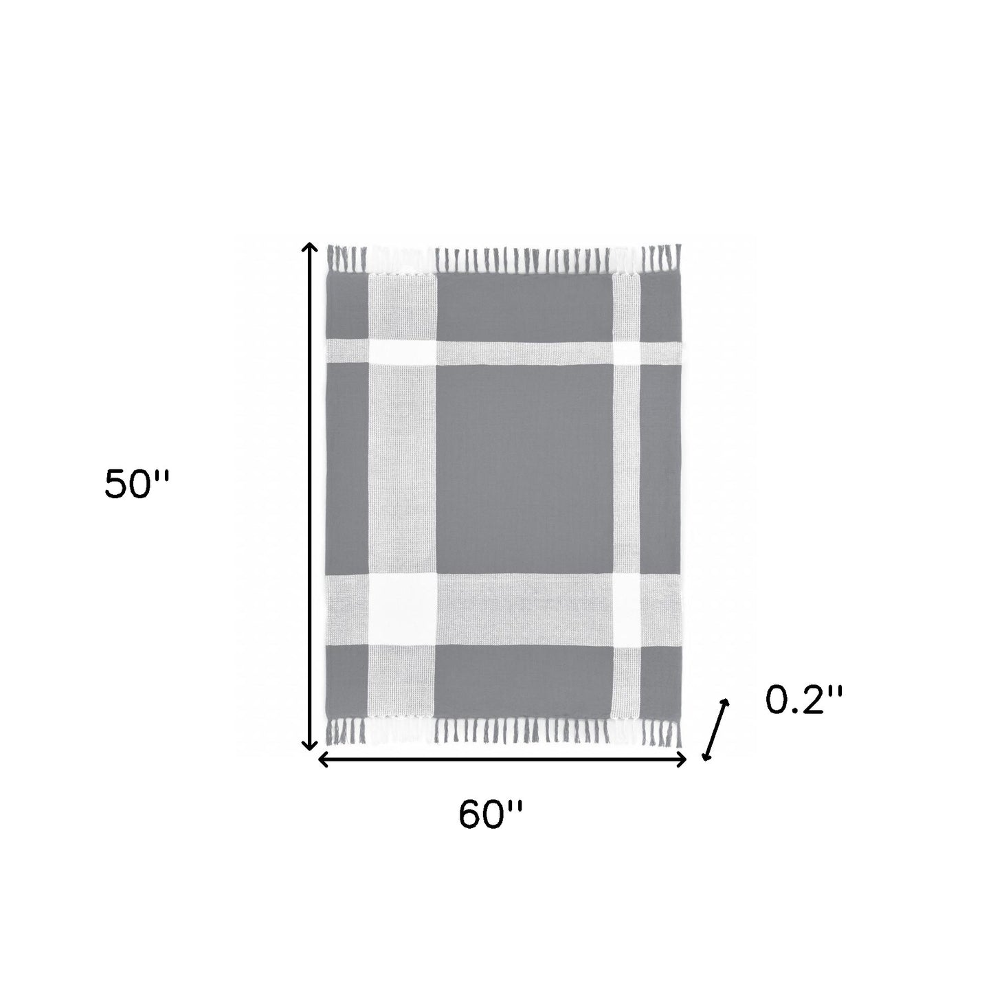 50" X 60" Green Woven Cotton Checkered Throw Blanket with Fringe