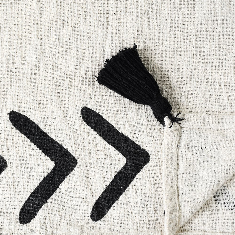 50" X 60" Black and White Woven Cotton Geometric Throw Blanket with Tassels