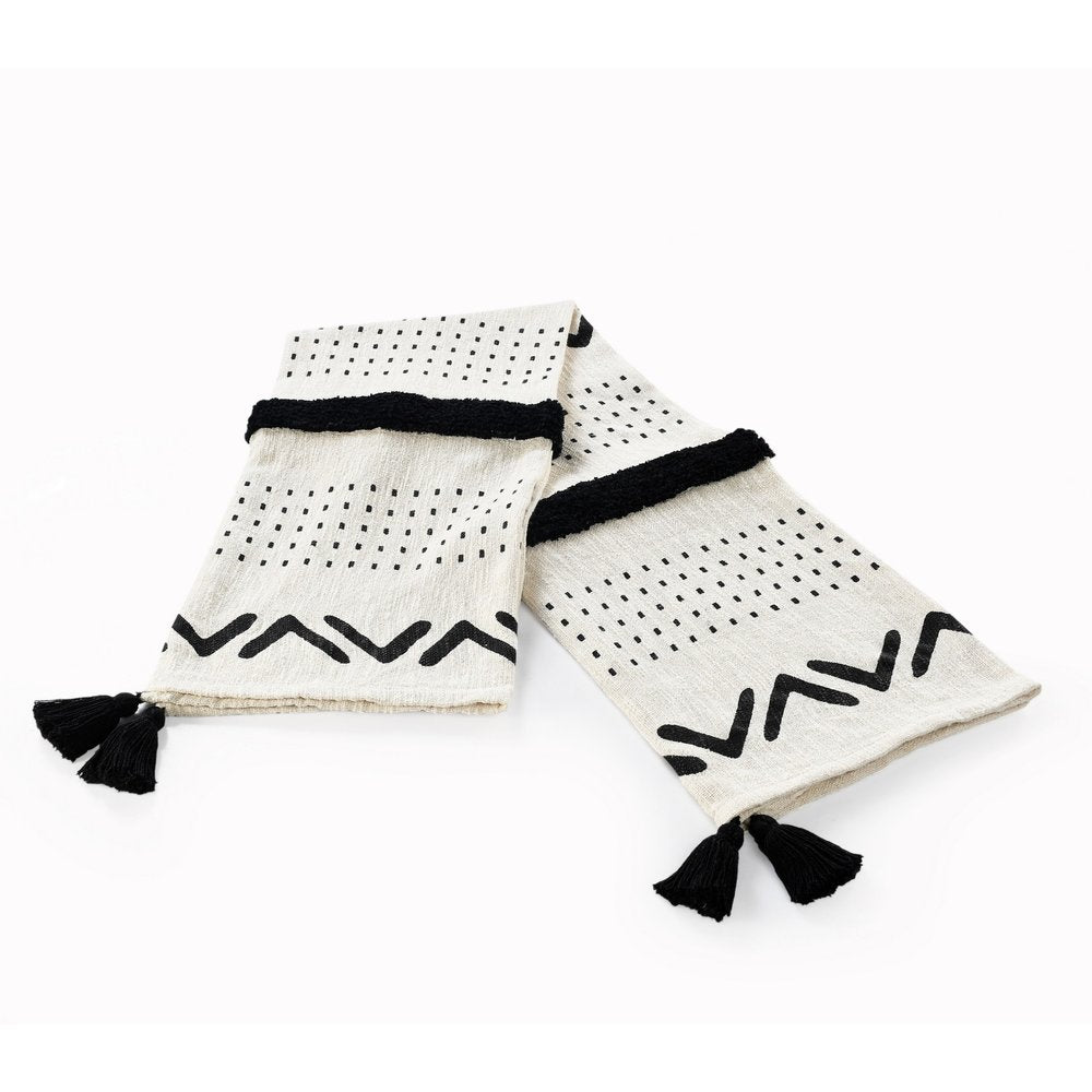 60" X 50" Black and White Woven Cotton Striped Throw Blanket with Tassels