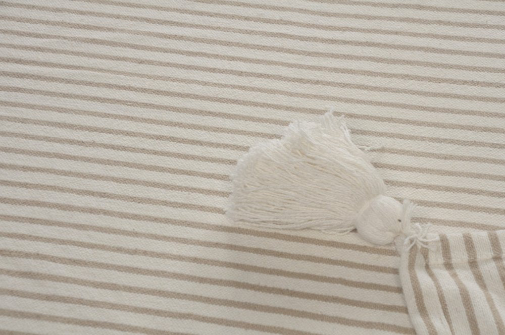 50" X 60" Brown and White Woven Cotton Striped Throw Blanket with Tassels