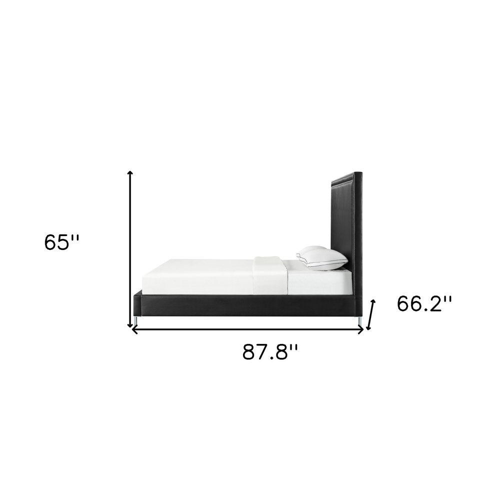 Black Solid Wood Queen Upholstered Faux Leather Bed with Nailhead Trim