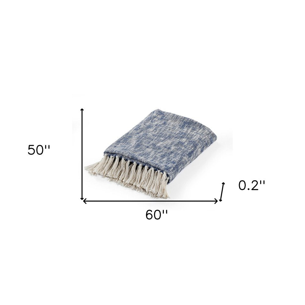 50" X 60" Blue and White Woven Cotton Throw Blanket with Fringe