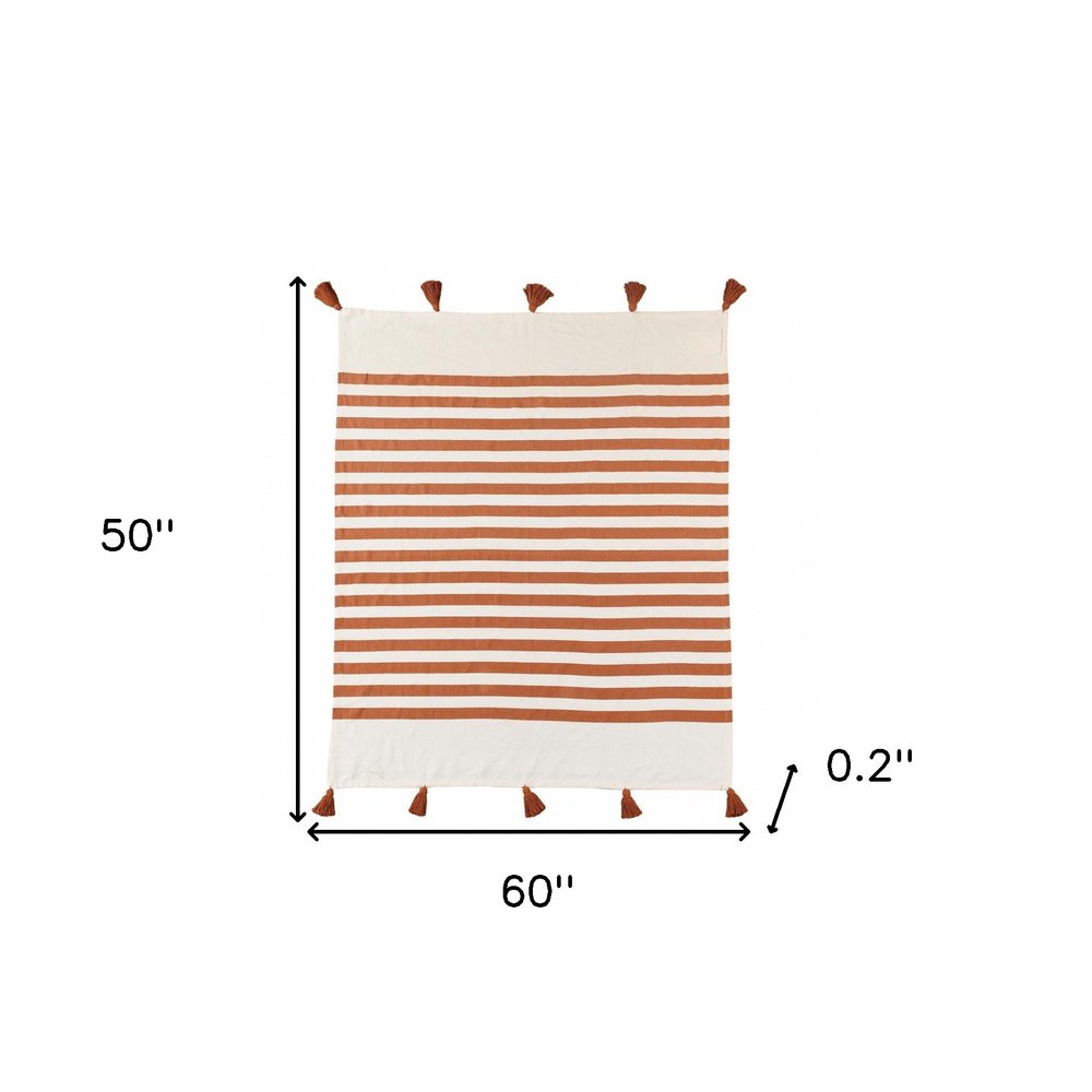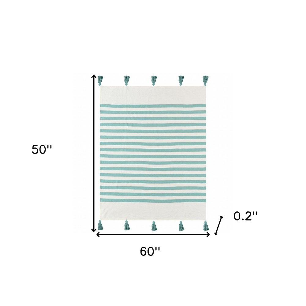 50" X 60" Blue and White Woven Cotton Striped Throw Blanket with Tassels