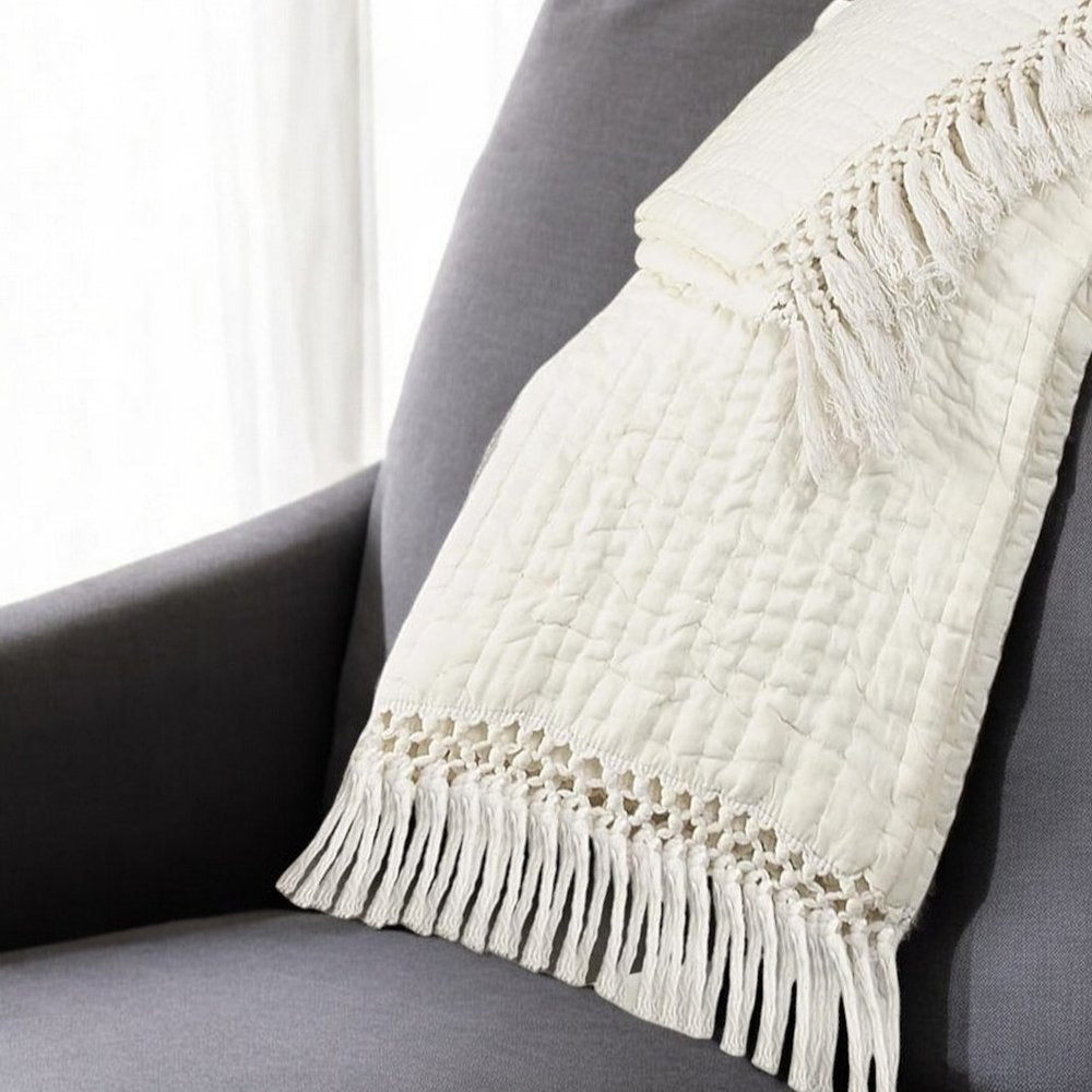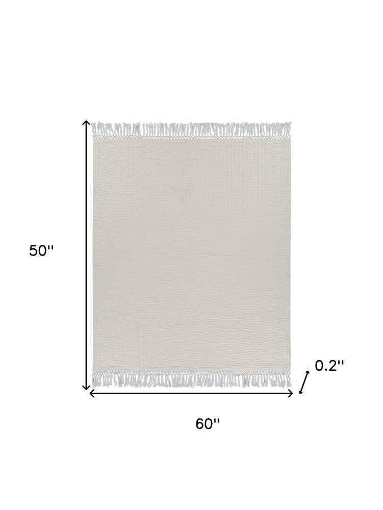 60" X 50" Blue Kantha Cotton Throw Blanket with Embroidery