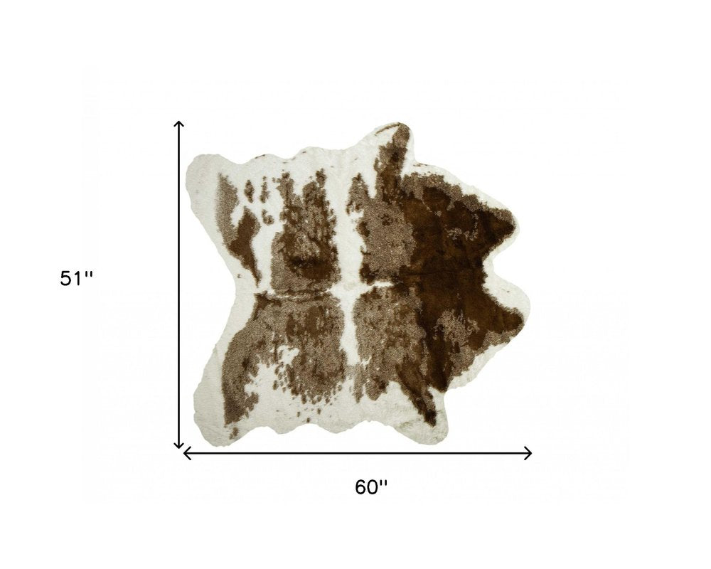 4' X 5' Brown And White Cowhide Print Hand Knotted Area Rug