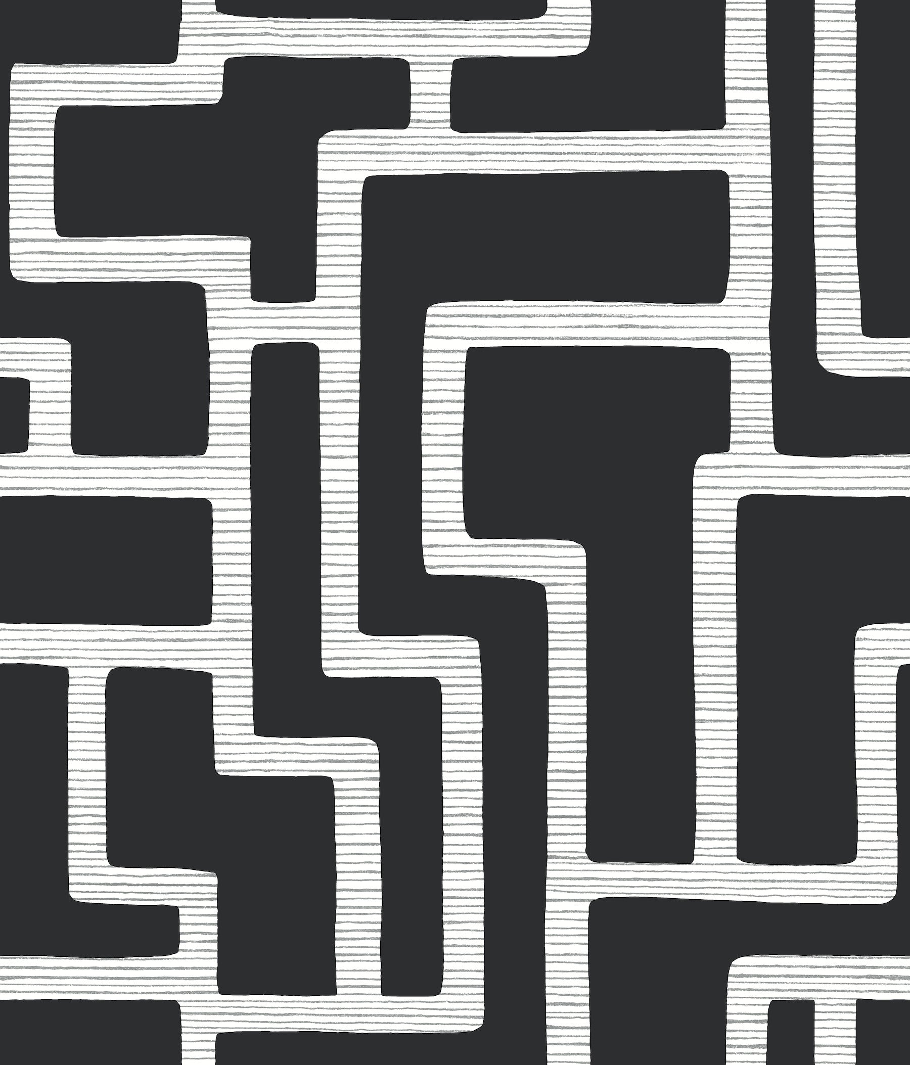 York Wallcoverings Earthy Tones Graphic Polyomino Black and White Wallpaper Geometrics Whites and Off-Whites Wallpaper - BW3831