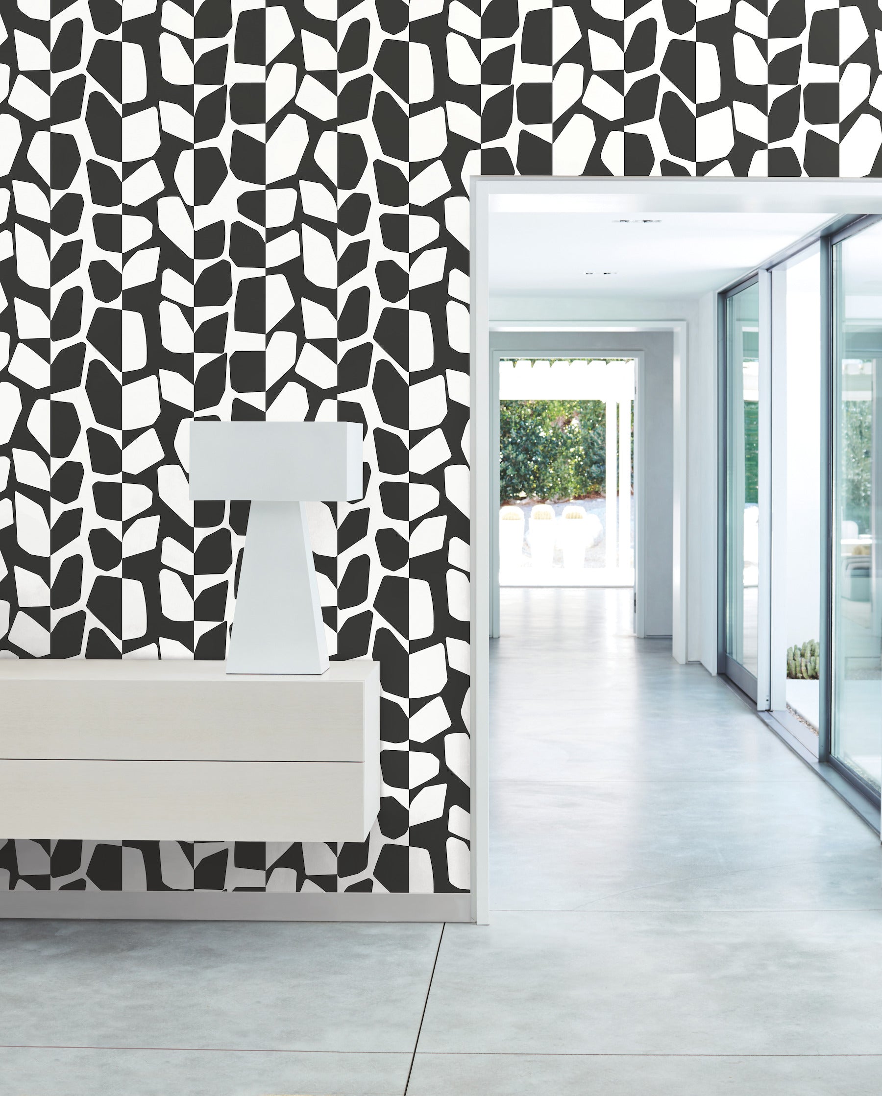 Use:Large, abstract vining leaves transform tribal art into a modern motif, available in both metallic and matte options, in pattern Primitive Vines. This Primitive Vines Wallpaper measures approximately 27 inches wide by 27 feet long, covering About 60.8 square feet per roll. Durable and easy to remove from primed walls, this friendly to hang unpasted nonwoven wallpaper is created with a special blend of synthetic fibers, making it both easy to hang and tear resistant.