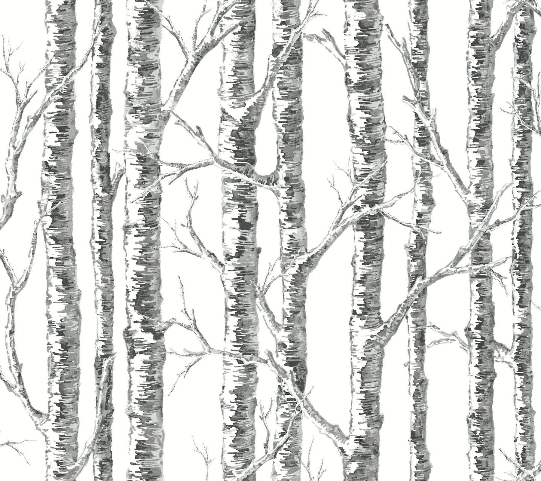 York Wallcoverings Beige and Neutrals Paper Birch Black and White Wallpaper Botanical Whites and Off-Whites Wallpaper - BW3902