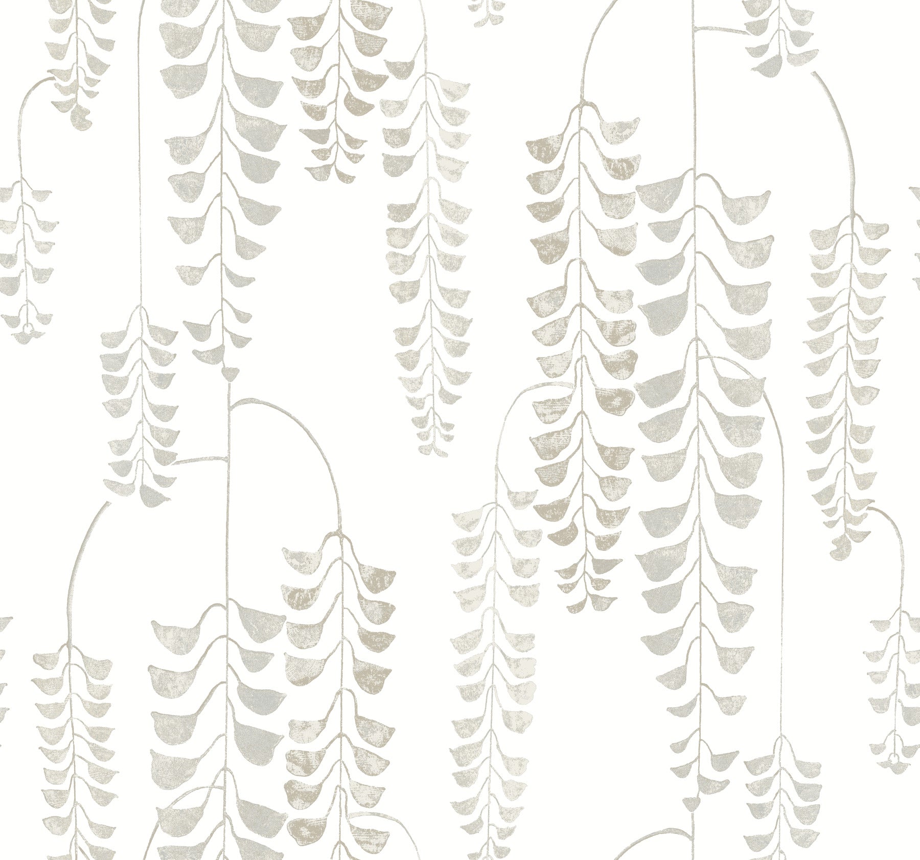 Use:Dangling blossoms on twining vines form a shining metallic silhouette of flowering wisteria in the pattern Deco Wisteria. This Deco Wisteria Wallpaper measures approximately 27 inches wide by 27 feet long, covering About 60.8 square feet per roll. Manufactured on Sure Strip?, a unique high performance substrate, this ultra-easy removable wallpaper is guaranteed easy to install and easy to remove; simply use water to activate.