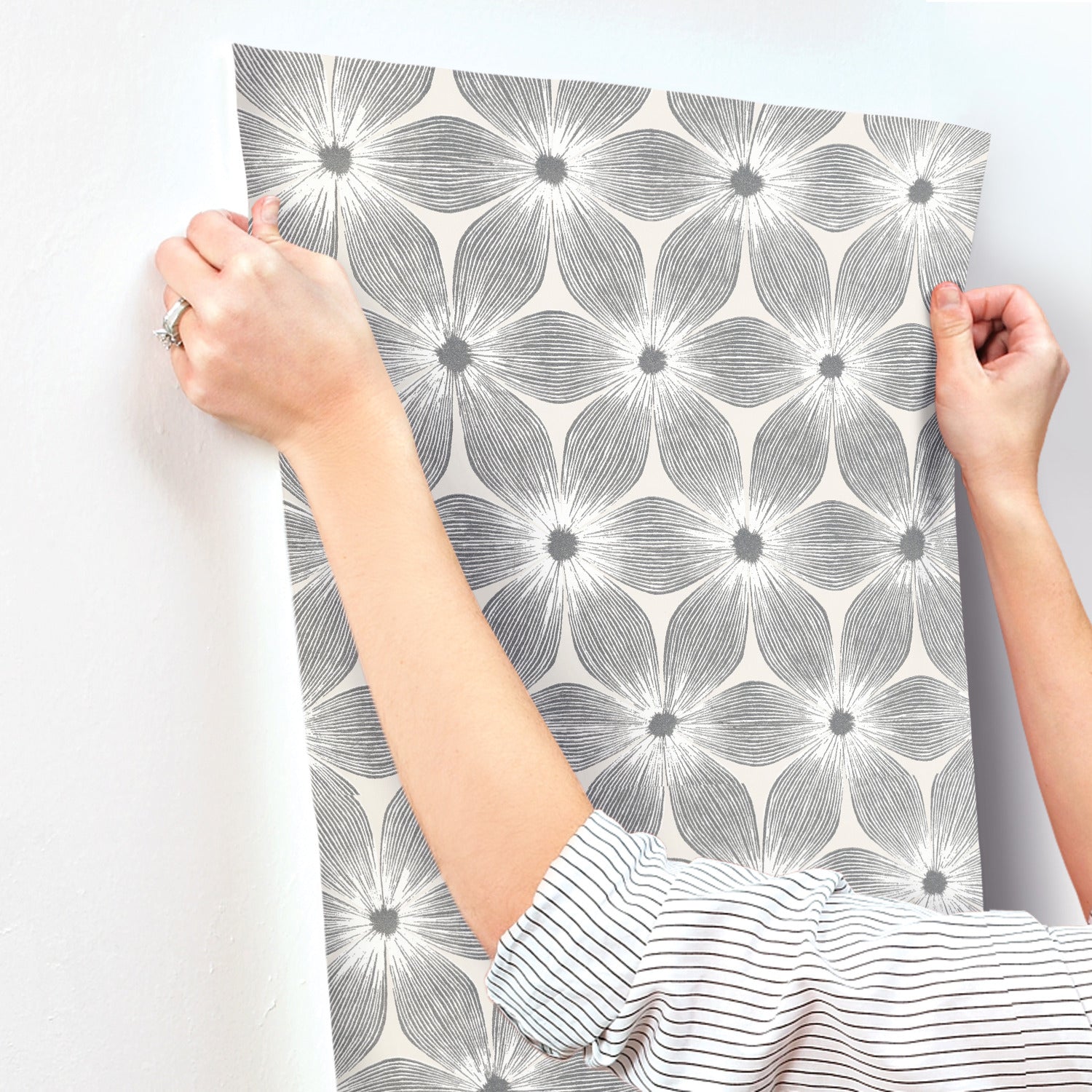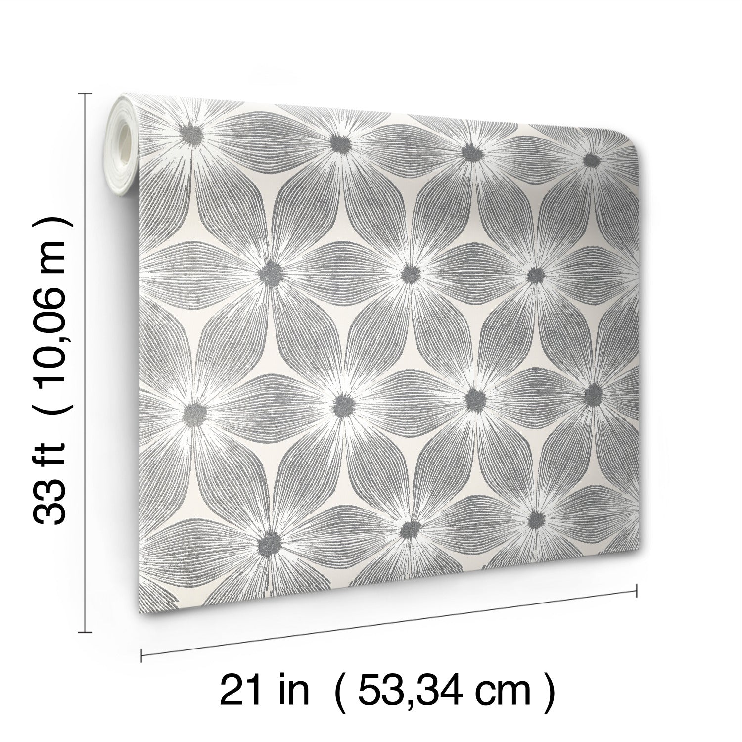 Use:Oversized blossoms, like wildflowers, form an interlocking design against a solid background. The daisy-like blooms have a glistening finish thanks to the metallic inks on Everlasting Wallpaper. This Everlasting Wallpaper measures approximately 21 inches wide by 33 feet long, covering About 57.8 square feet per roll. Durable and easy to remove from primed walls, this friendly to hang unpasted nonwoven wallpaper is created with a special blend of synthetic fibers, making it both easy to hang and tear resistant.