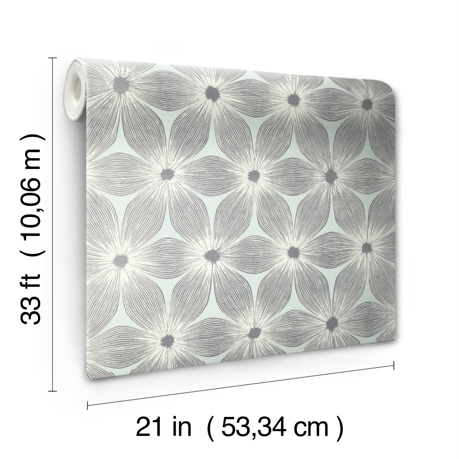 Use:Oversized blossoms, like wildflowers, form an interlocking design against a solid background. The daisy-like blooms have a glistening finish thanks to the metallic inks on Everlasting Wallpaper. This Everlasting Wallpaper measures approximately 21 inches wide by 33 feet long, covering About 57.8 square feet per roll. Durable and easy to remove from primed walls, this friendly to hang unpasted nonwoven wallpaper is created with a special blend of synthetic fibers, making it both easy to hang and tear resistant.